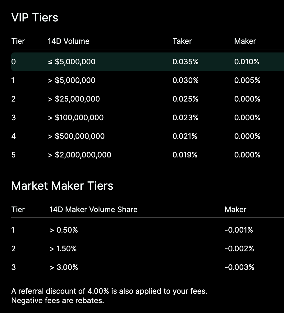 Hyperliquid 的费率结构