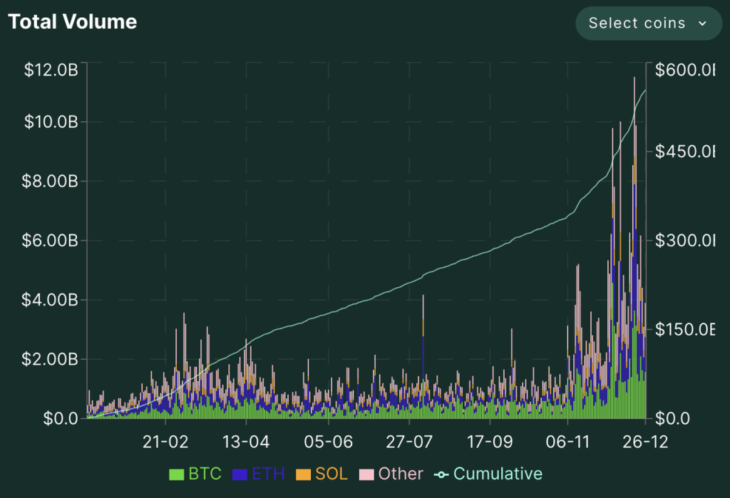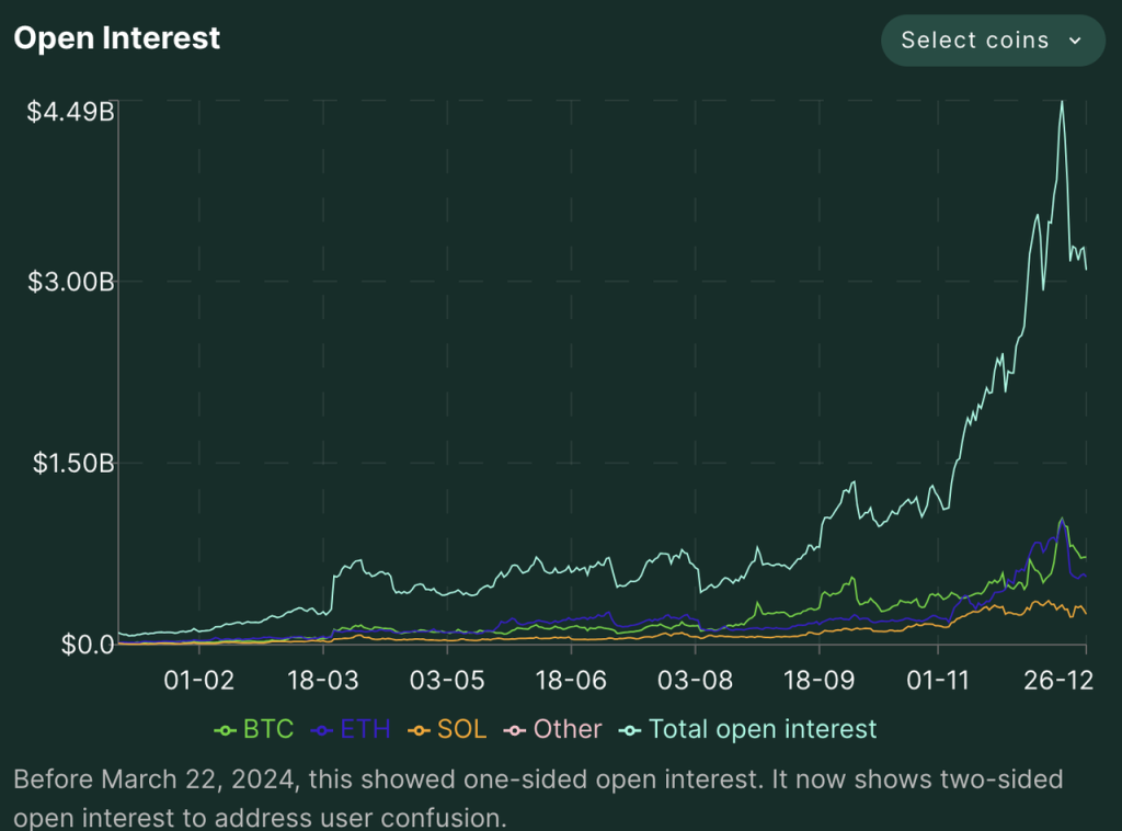 从交易量和持仓量来看,Hyperliquid 发展迅速,最近两个月尤其如此。随着 $HYPE 空投和价格的持续上涨,平台的各项数据也都在 12 月 17-20 日之间达到高点。