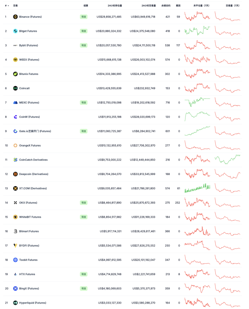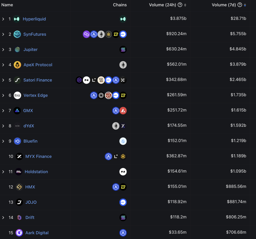 去中心化衍生品交易所 7 日交易量排序 来源:DeFiLlama