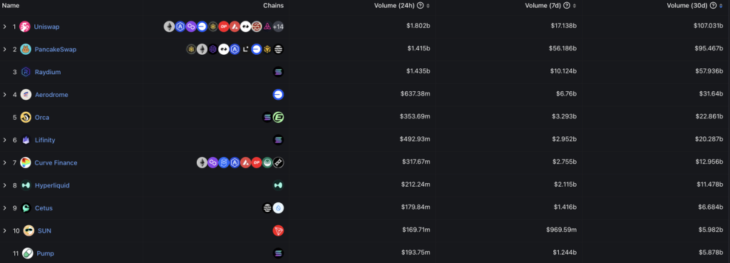 Hyperliquid 的最近 30 日日均现货交易量 4 亿美金左右,在 DEX 中居前十,与 Curve、Lifinity 以及 Orca 的交易量比较相近。