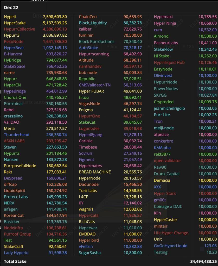HyperEVM 测试网验证节点列表 来源:ASXN
