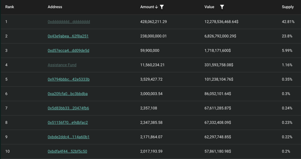 团队和社区总体按照 3:7 的比例分配。当前持币地址情况如下: