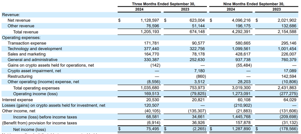 Coinbase quarterly report 24Q3