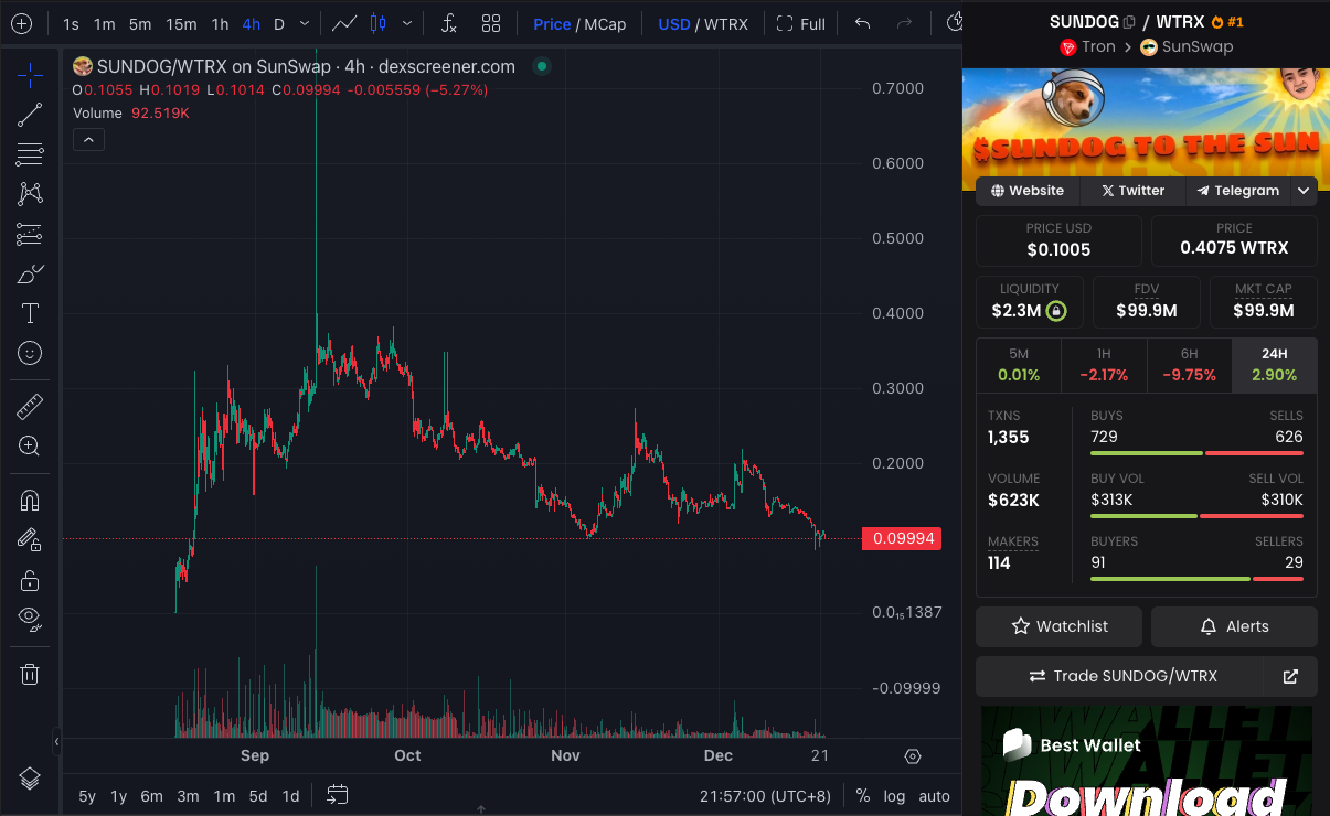在 SunPump 平台上线的所有 Token 里,$SUNDOG 是毫无争议的「头号种子选手」,其表现一直都是最好的。