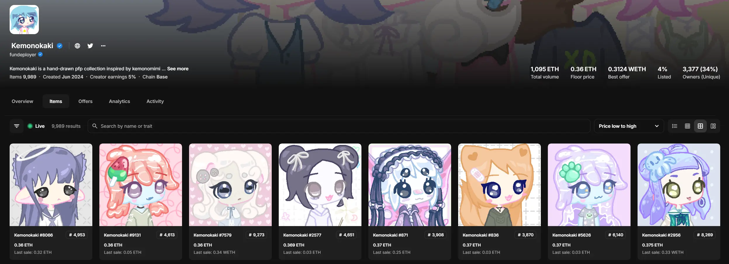 这个项目放进来会有些牵强,但是值得关注。Kemonokaki 用一句话总结,相当于 Base 上的 Milady。