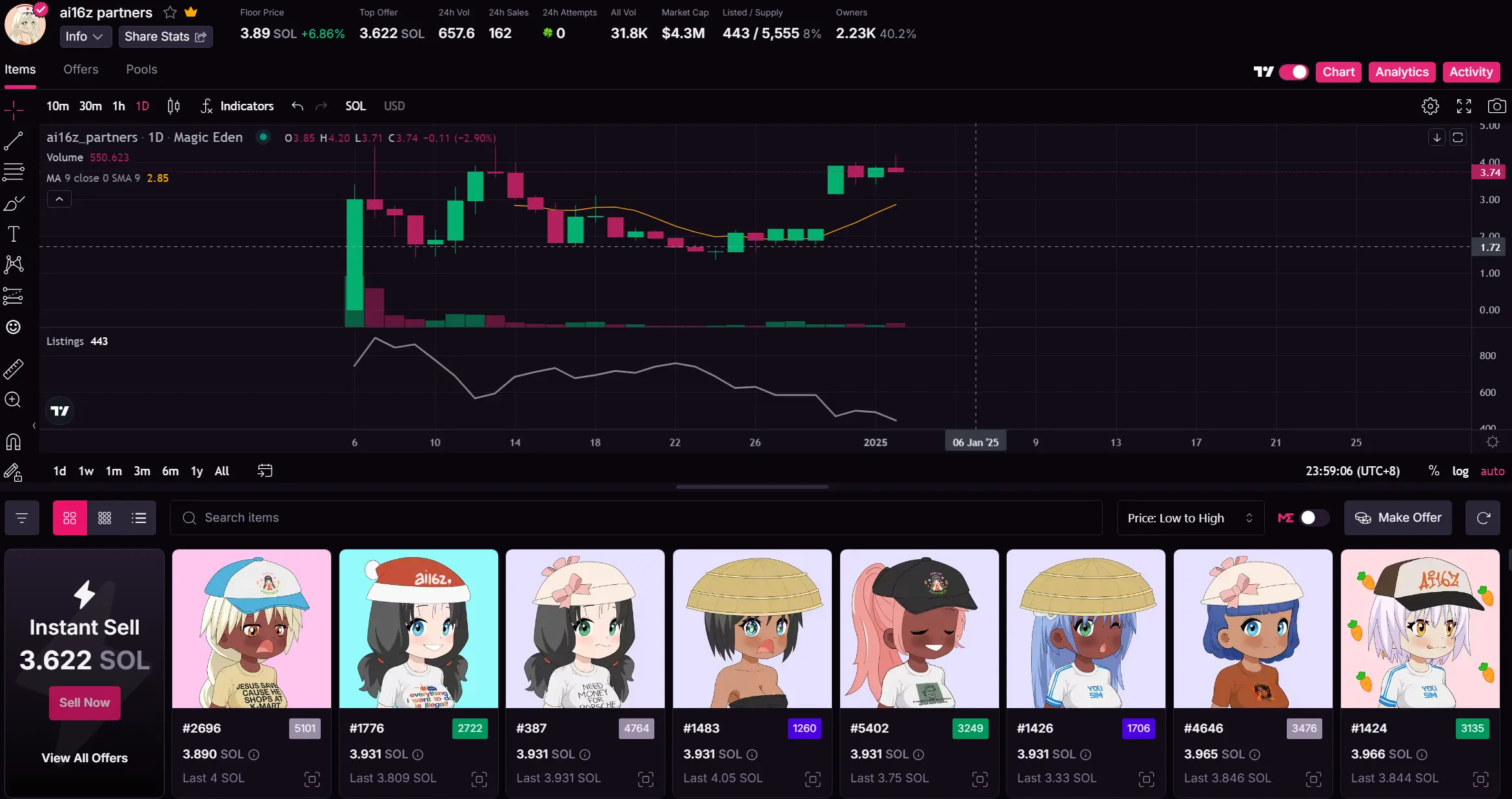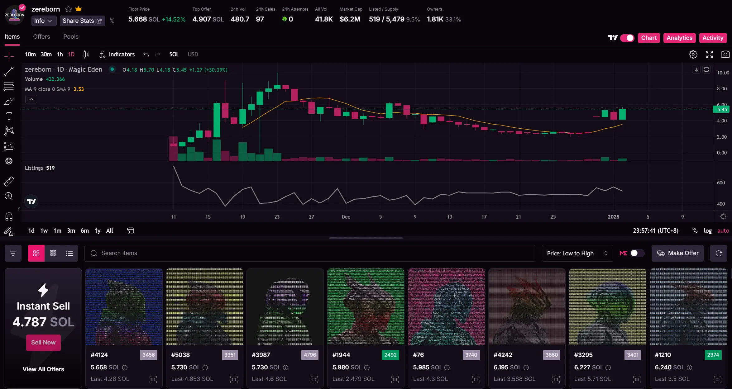 目前不知道会有什么具体的效用,地板价接近 5.7 SOL。