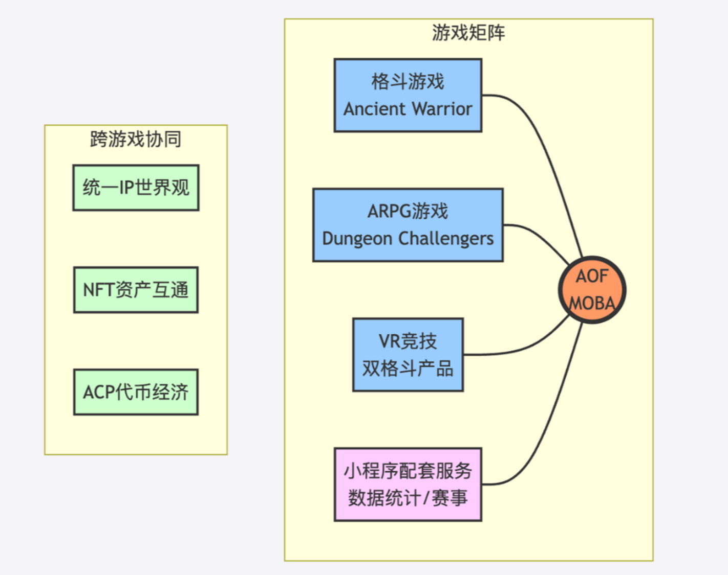 由此可见,一款游戏只是一个矩阵的底座,AOF 想做的显然更多的是平台和生态。