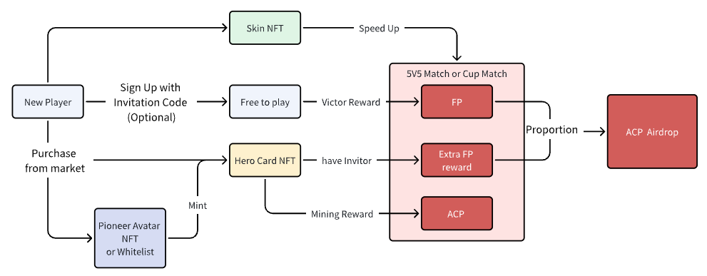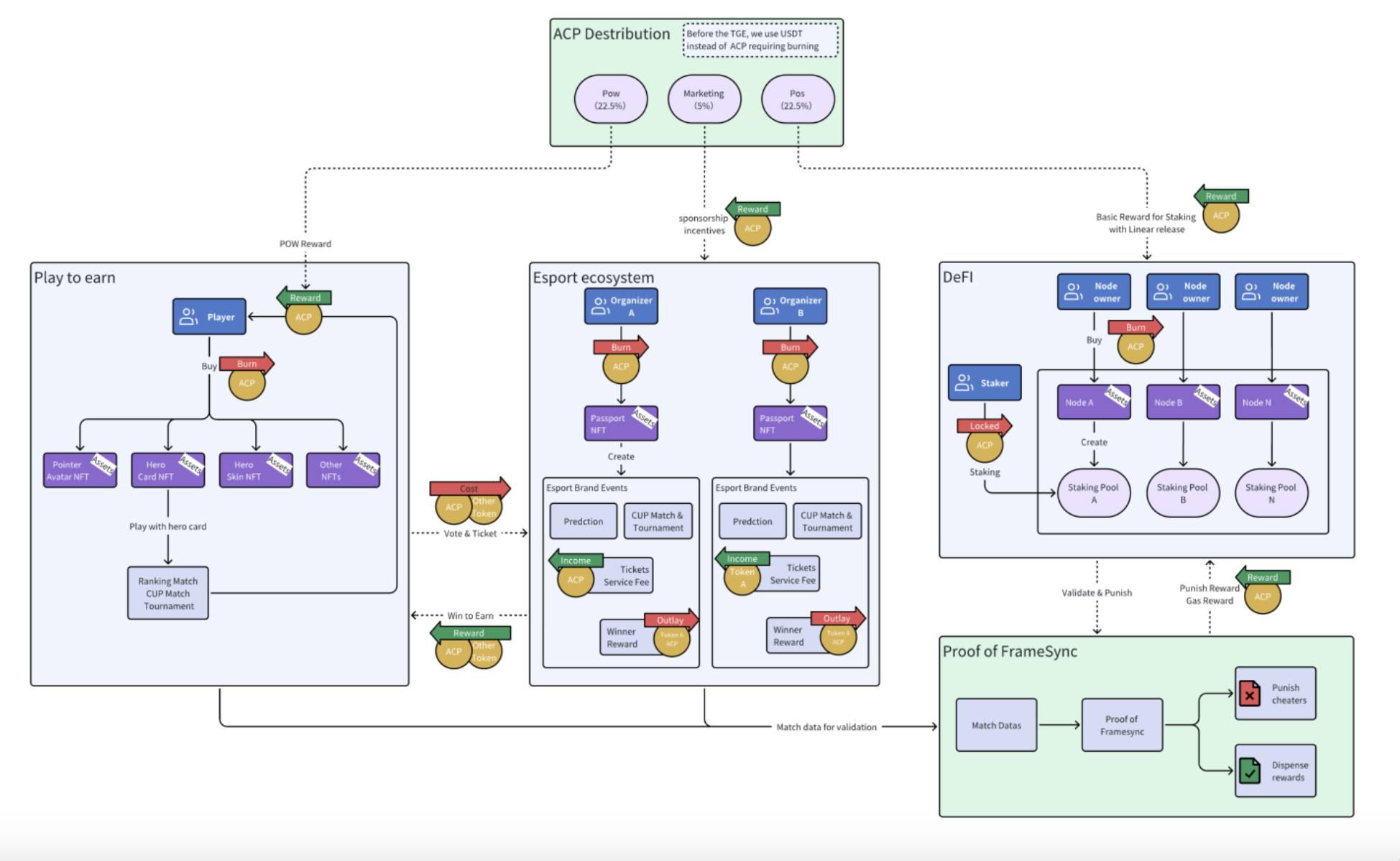 最后,ACP代币作为统一结算货币,在所有游戏中流通。不同游戏的经济活动,如NFT交易、赛事奖励、道具购买等,都使用ACP进行结算。