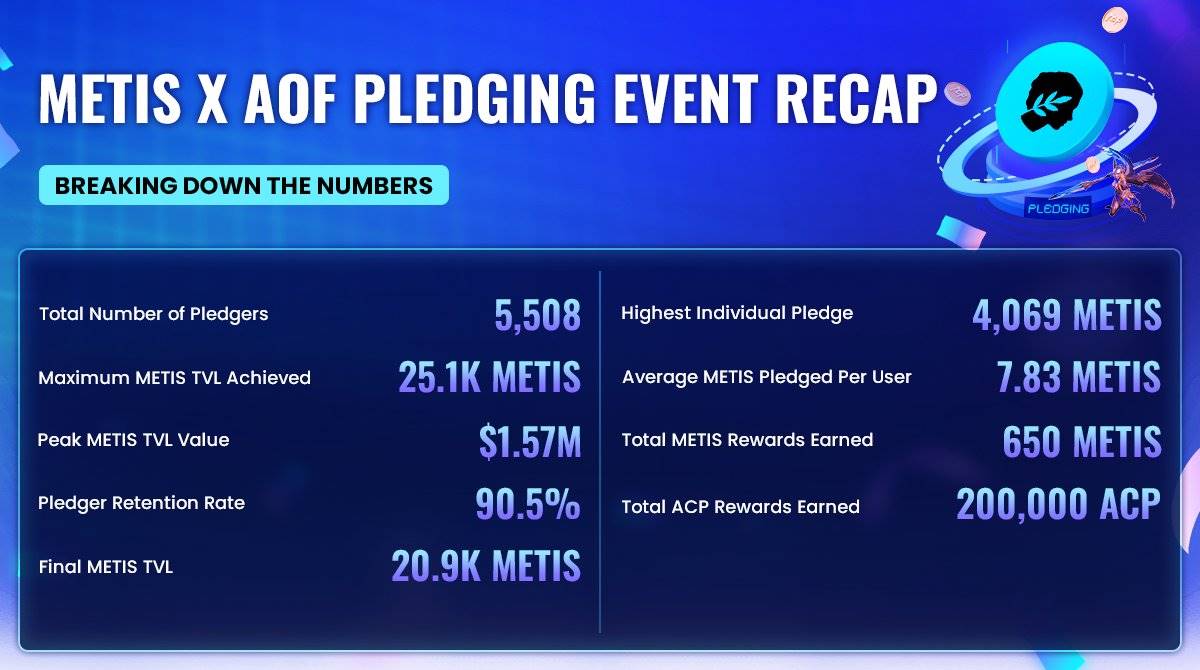 不过目前,质押活动已经落下帷幕。公开数据显示,本次质押活动共计吸引了5500名用户, 21K 左右的Metis 被用于进行质押,累计产生了200,000 ACP 奖励,体现了玩家极高的参与热情。