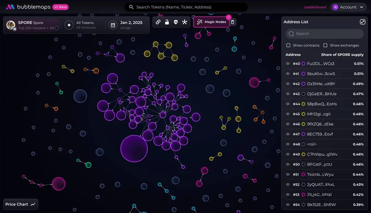 需要注意的是,50% 的供应量已被质押,因此 bubble map 中可能缺少部分信息。