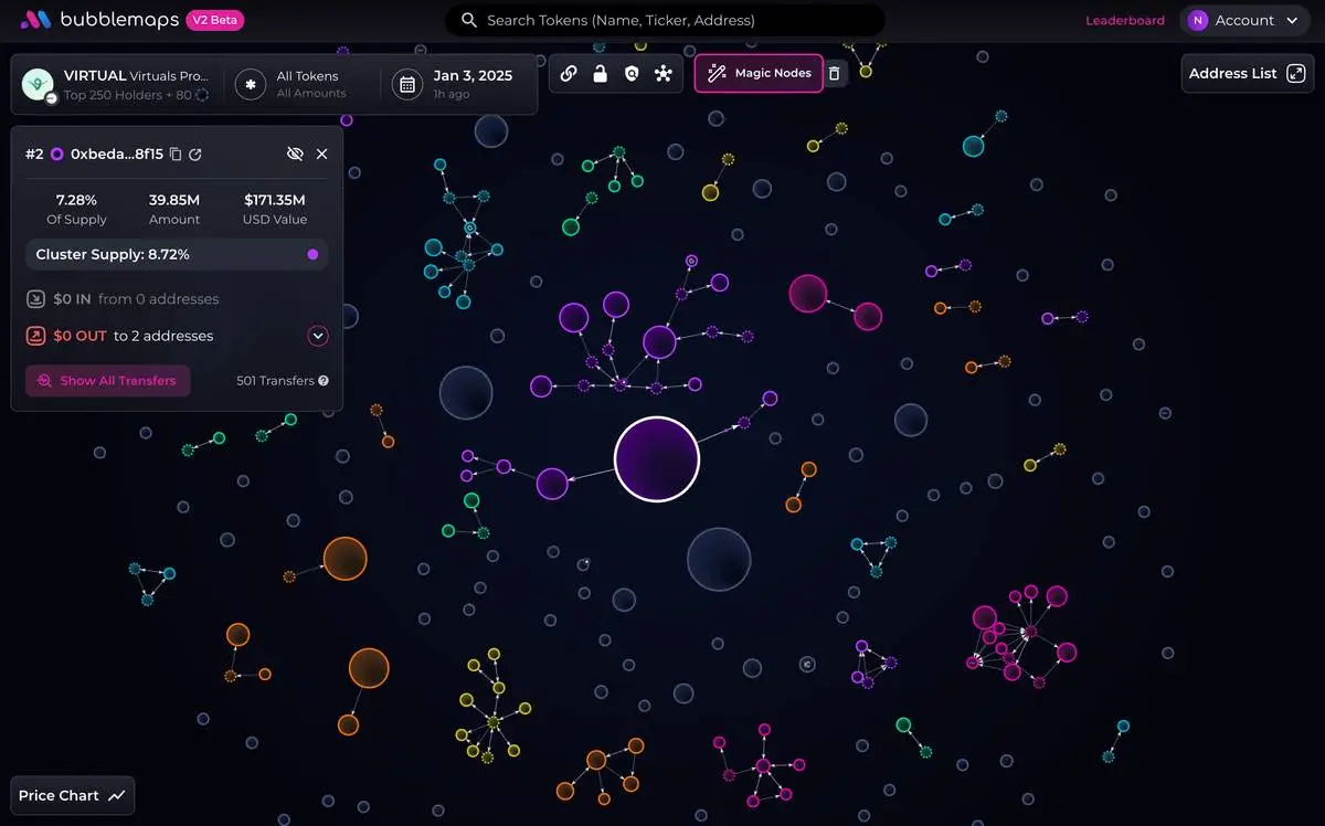 该分布看起来较为分散,4 个主要集群分别持有约 4%,其中一个与知名加密货币做市商 Wintermute (0xdbf5) 有关联。