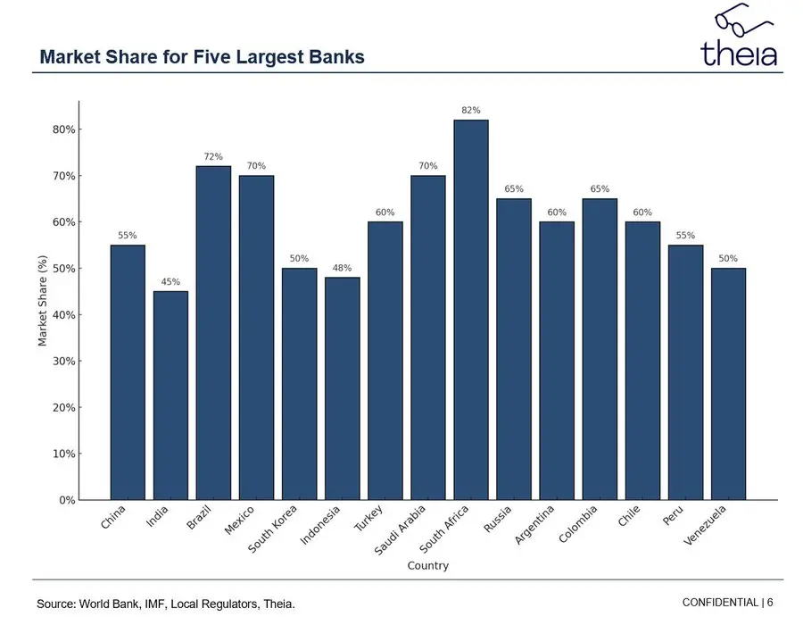 大部分新兴经济体的市场结构都存在类似的情况。每个国家都有当地的金融机构作为进入本国市场机会的「门卫」,并利用这一特权地位榨取租金。这就是我们所称的「地方银行寡头垄断」问题。