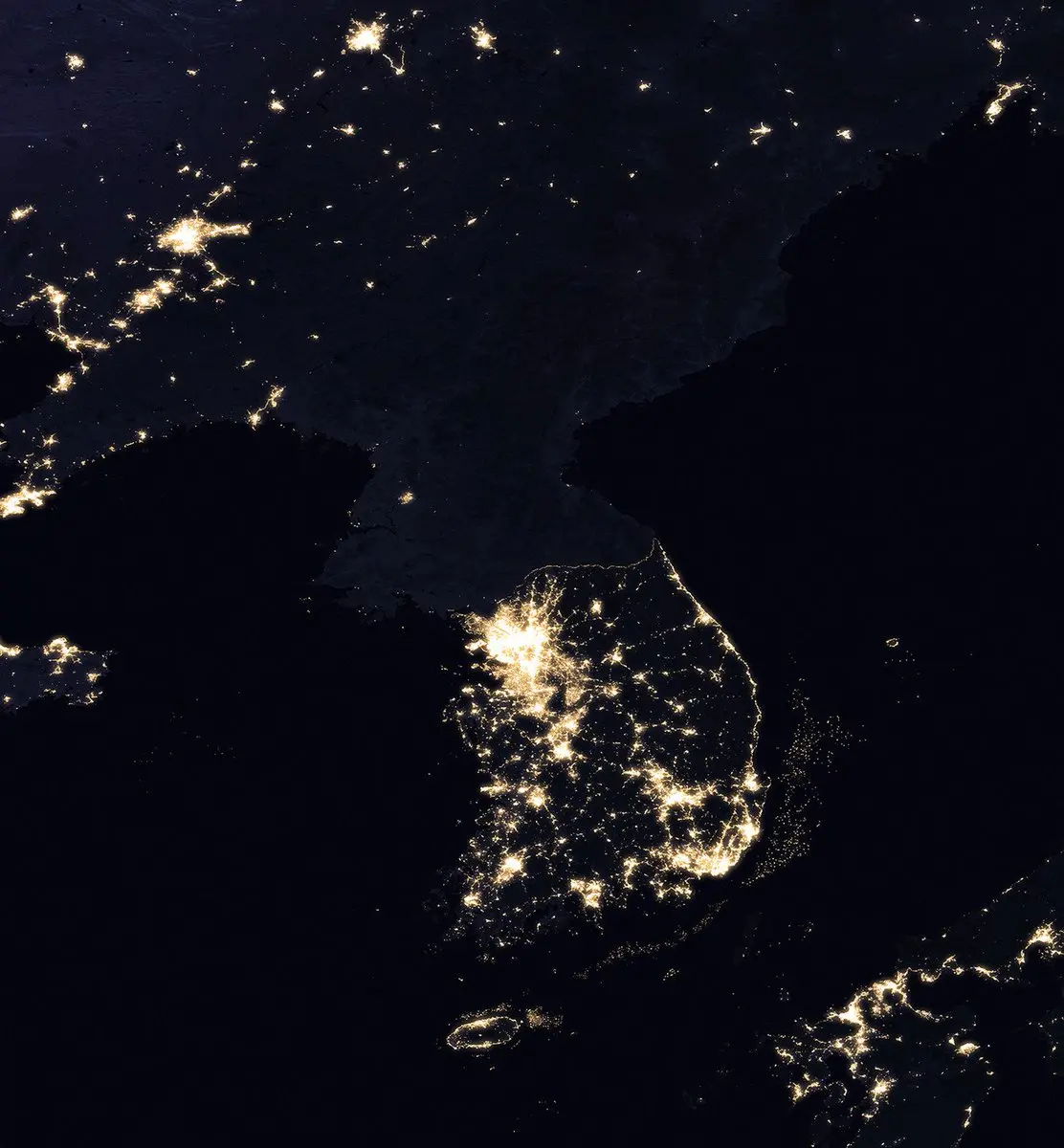 著名的朝鲜和韩国夜间地图展示了财产权和包容性经济制度的重要性