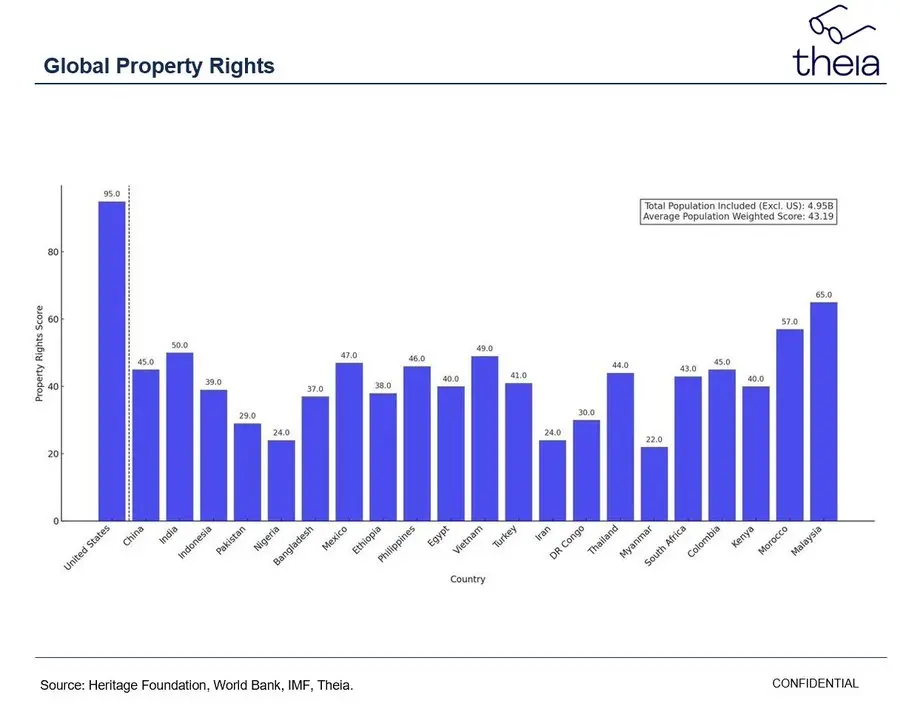 如果您生活在美国、澳大利亚或欧洲等国家——大多数读者可能都生活在这些地方——您可能无法完全理解这种困境,因为您很可能生活在一个产权评分接近 95 的国家。