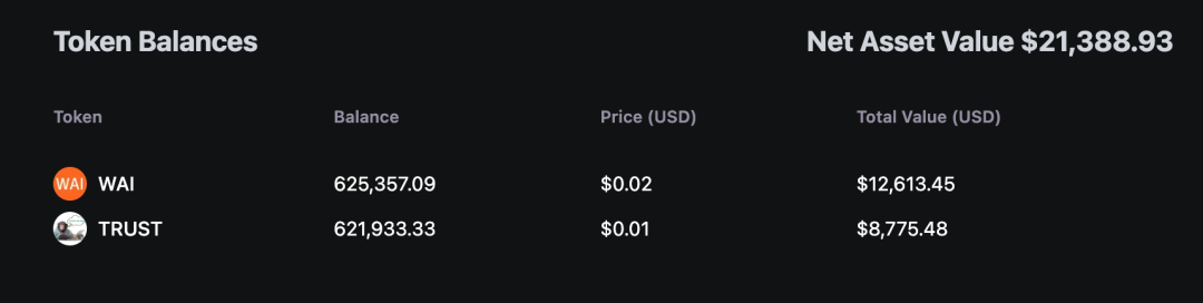 不过从目前 DR3AM 的持仓来看,它更多的是在买其他投资 DAO 的代币,例如 WAI 和 TRUST(后文有介绍)。