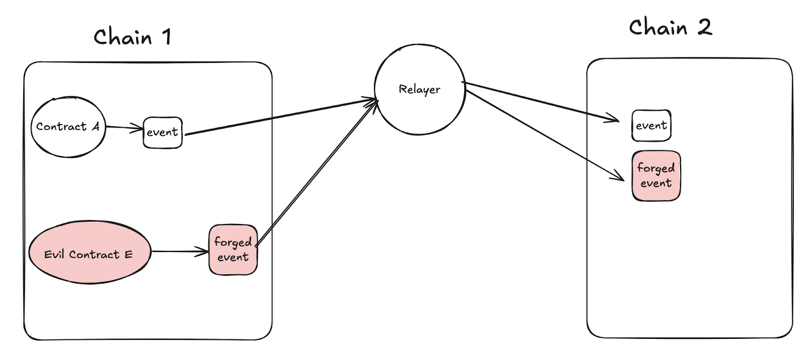 跨链桥在监听链上事件的时候,没有校验事件是否来自于指定的合约地址,导致其他合约可以伪造事件。