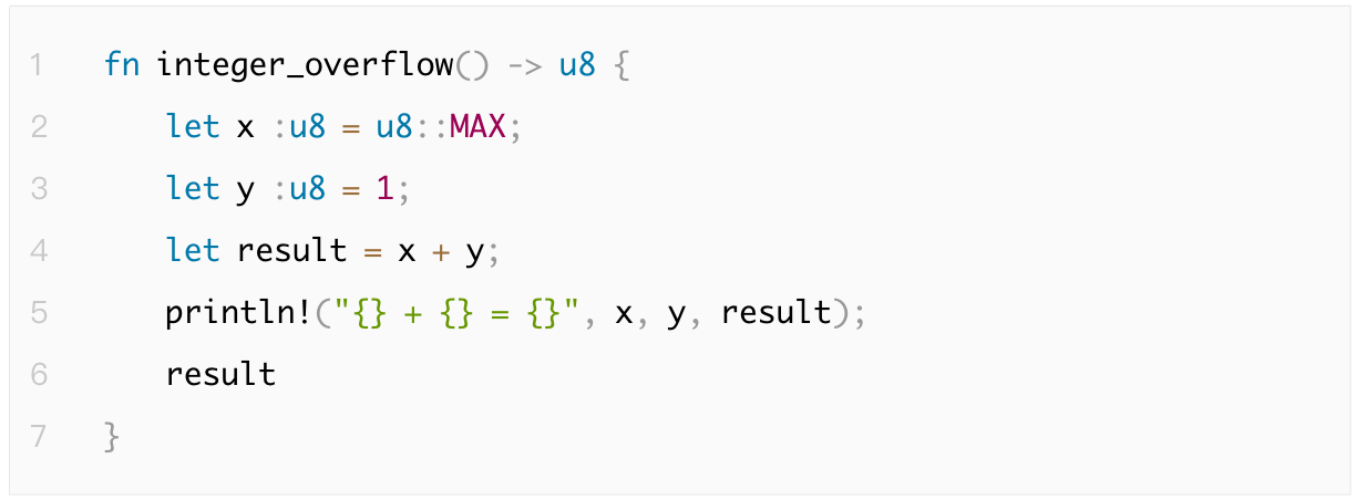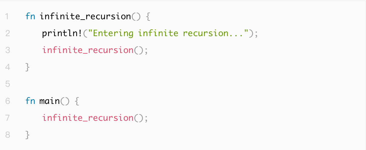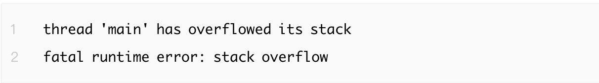 Rust 会在调试信息中显示栈溢出错误,类似于以下输出: