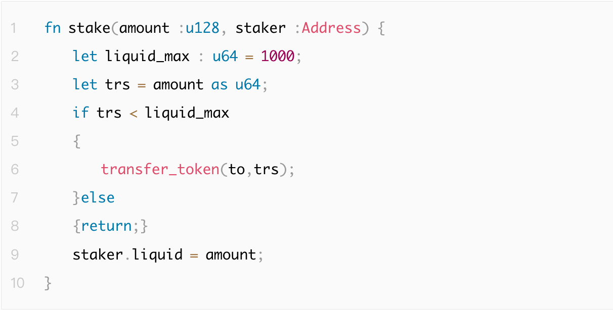 在如下示例代码中,用户添加了amount数量代币的流动性,然后系统记录其流动性数量。如果amount = (u128::MAX << 64) | 1,那么实际只支付了1的代币,但是流动性余额记录为340282366920938463444927863358058659841。