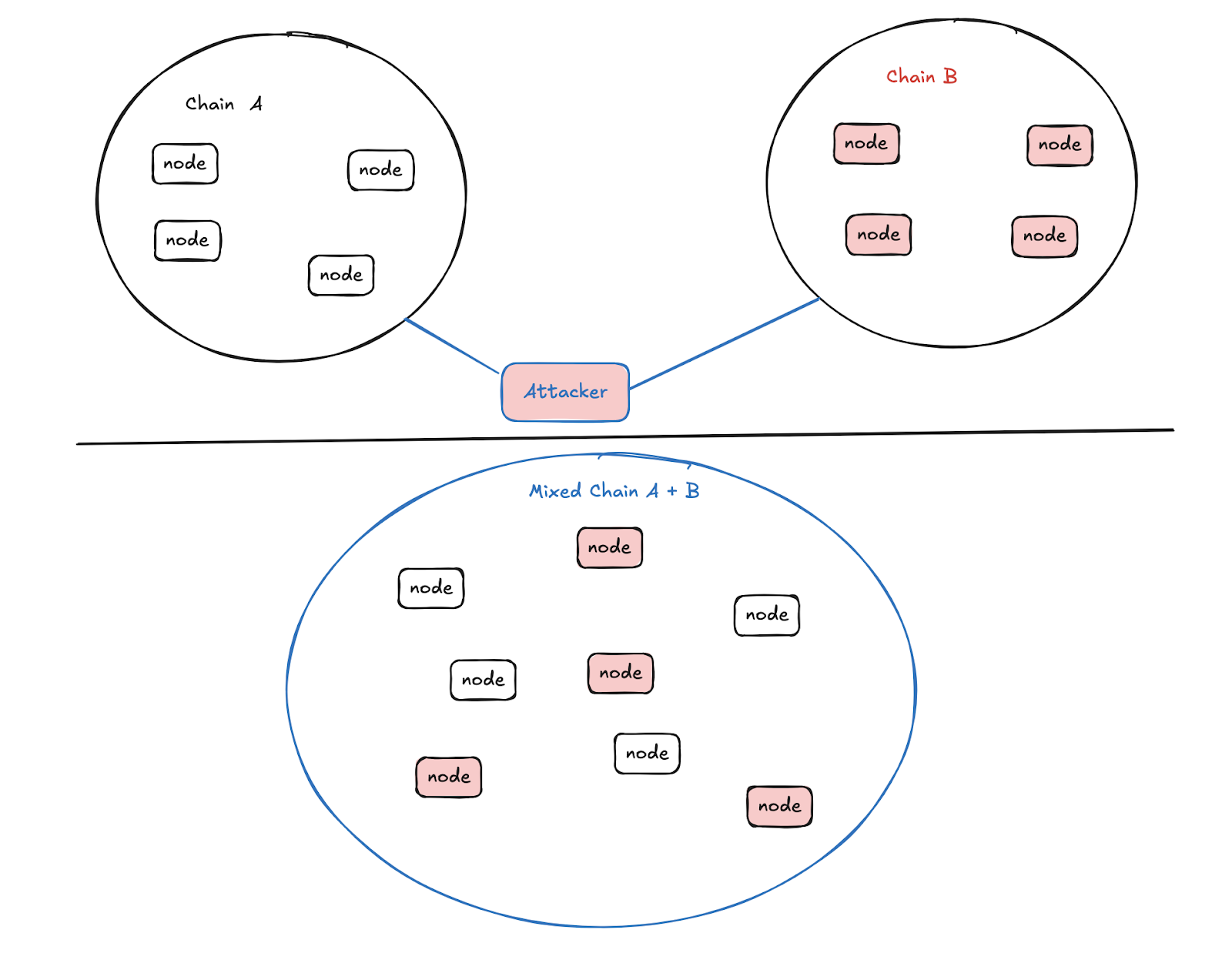 攻击面:共识机制设计不完善或被操控时,可能遭遇 双花攻击、自私挖矿、51%攻击 等问题。攻击者可以通过控制超过一半的计算能力执行恶意分叉,影响交易记录的合法性。此外,某些共识机制在面对高延迟或分区网络时,可能会因缺乏明确的容错机制而失效。