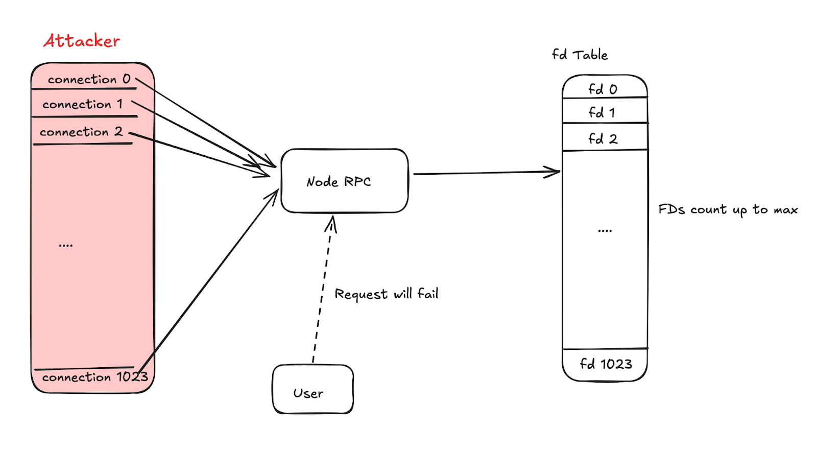 此攻击的大概原理是:攻击者通过漏洞,使目标节点的内核句柄耗尽或者接近耗尽,让其无法对正常的业务请求进行响应。