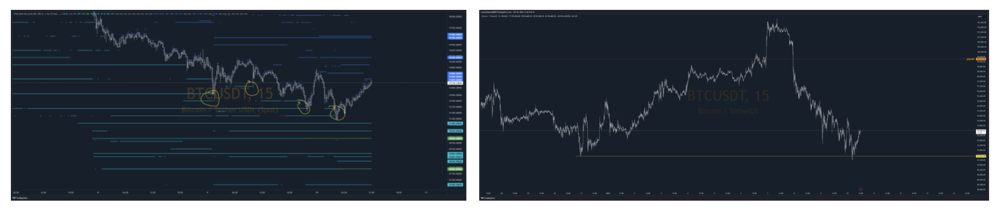 当前期货市场密集清算区的分布如图所示,昨晚的一波快速下跌清算掉了两周前积累的多头流动性;从图上的清算记录来看,目前市场依旧处于震荡背景下的来回清算结构,也就是哪里有流动性,就去哪里的节奏;如果不是周五有非农数据,我会认为这里支撑有效,回调到位了,但问题是关于市场如何看待非农;以及市场如何反应,这是完全无法预估的,所以这里是否会止跌反弹,还是要看今晚的数据了;
