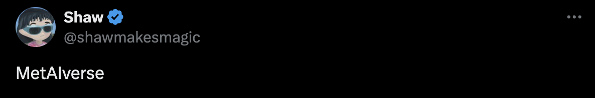 跟 Virtuals Protocol 曾经的经历一样,在这个充斥着投机者的市场中最难的就是持续相信自己的信仰以及持续建设的行为。在各式空气项目的持续轰击下,不得不经历被劣币驱逐良币的过程,眼睁睁看着自己持续 built 的成果被一个资本驱动的热点轻易超越。这也不难理解 Shaw 和其他 M3 成员对于 LLM 或者社区 eliza 这类用自己产品衍生的 Fartcoin 的疑惑与愤怒。不论这其中有多少剧本或是资本博弈。从元宇宙、游戏到现在的 AI,M3 在背后持续想要将开发出 DogFooding 的 Metaverse,然而 AI Agent 在其中又会起到什么作用,我们还得从他们至今为止究竟做了什么开始说起。