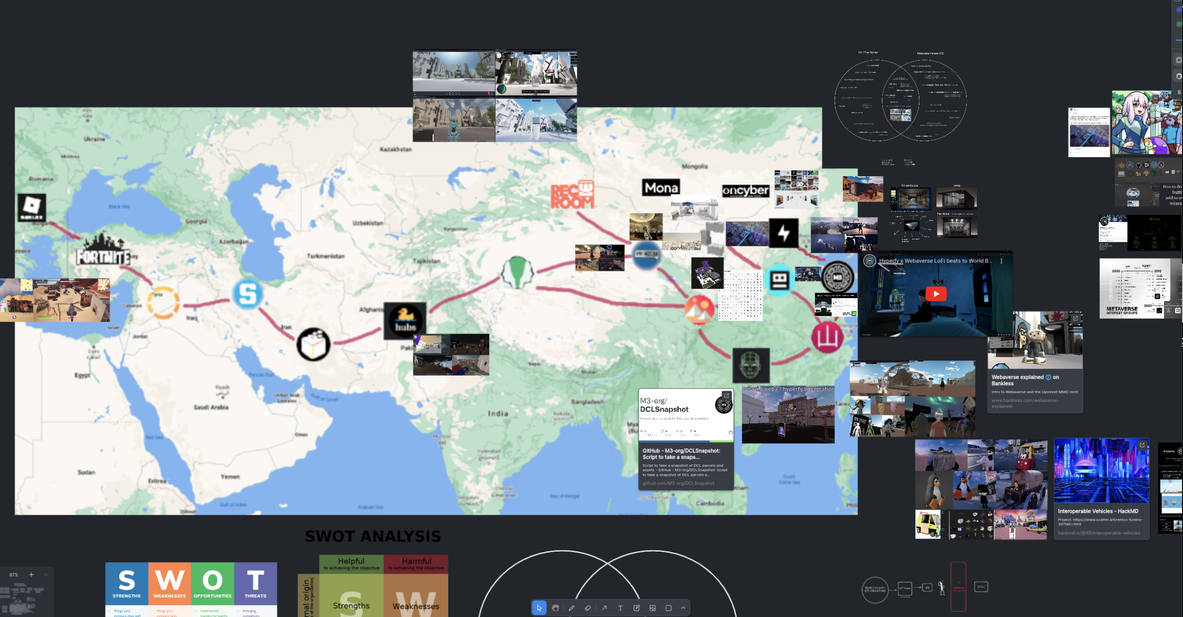 而社区发展至今已经发展了许多开发工具以及参与了许多项目的开发或者建设,持续建设老牌 Web3D 世界土地项目 Voxel 的 OpenVoxel、利用 WebGL 和 WebXR 等网页技术来构建去中心化的 3D 体验的 JanusXR、可以在 Steam 上下载的 3D 世界制作工具Anarchy Arcade、元宇宙土地项目转型的 AI 元宇宙游戏生态的 Webaverse「现 Moemate」和Hyperfy、艺术博物馆项目 MuseumofCrypto、Cryptoavatar、元宇宙商店 MetaFactory 以及最近最近大火的 AI DAO 组织 ai16z、Project89 等等。