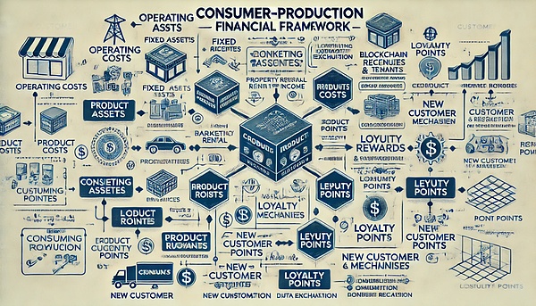 从分拆资产包结构,再来看消费产融的经济模型,核心是:Prosumer,消费即生产。