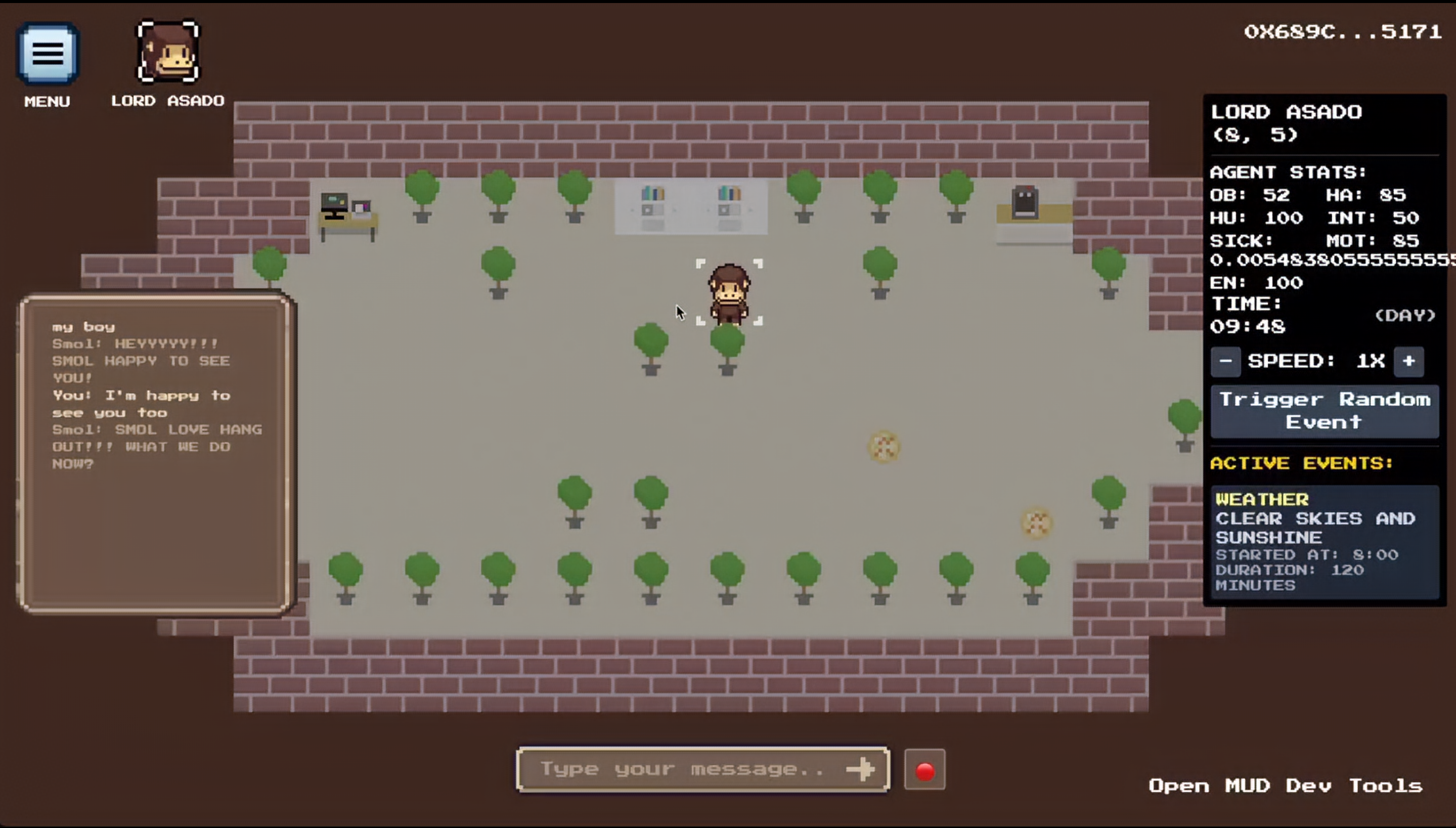 Smol Worlds Treasure DAO 生态的核心 PFP 项目 Smol Brains 旗下正在开发的一款 AI 游戏,该游戏的负责人就是如今在 AI Crypto 赛道大名鼎鼎的 Shaw,他最早就是 Treasure DAO 生态的开发。
