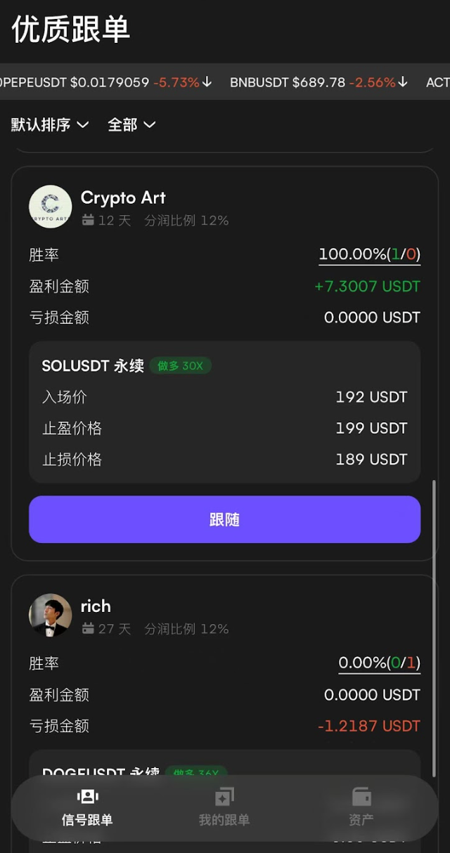 上半年,CoinW 推出了 Signal Copy Trading,这一创新产品一经推出便迅速吸引了大量用户,它为交易者提供了快捷智能的交易体验。带单者可高效发布策略信号,迅速同步。跟单者在移动端可一键跟随,还可以直观清晰查看盈亏次数和金额。