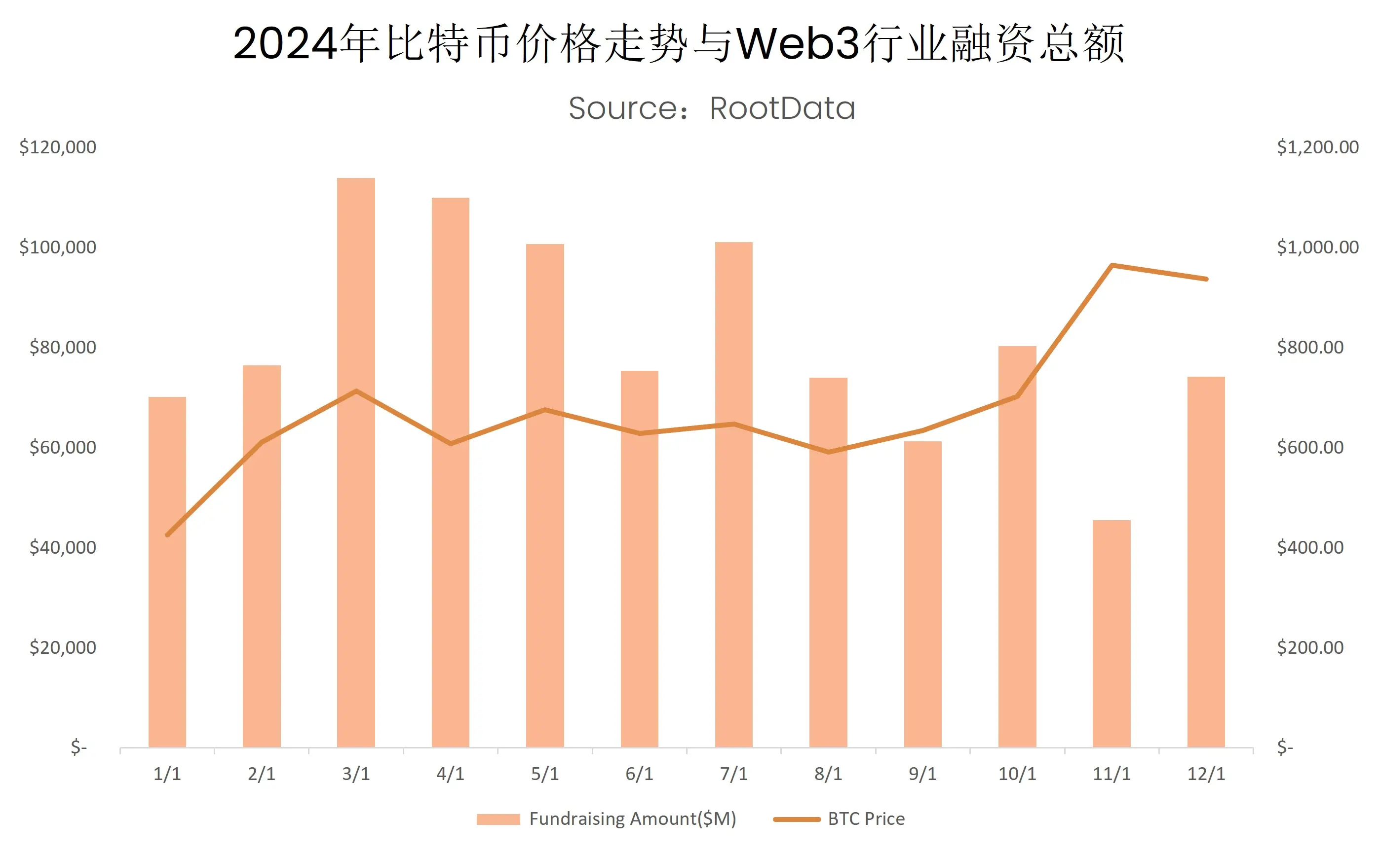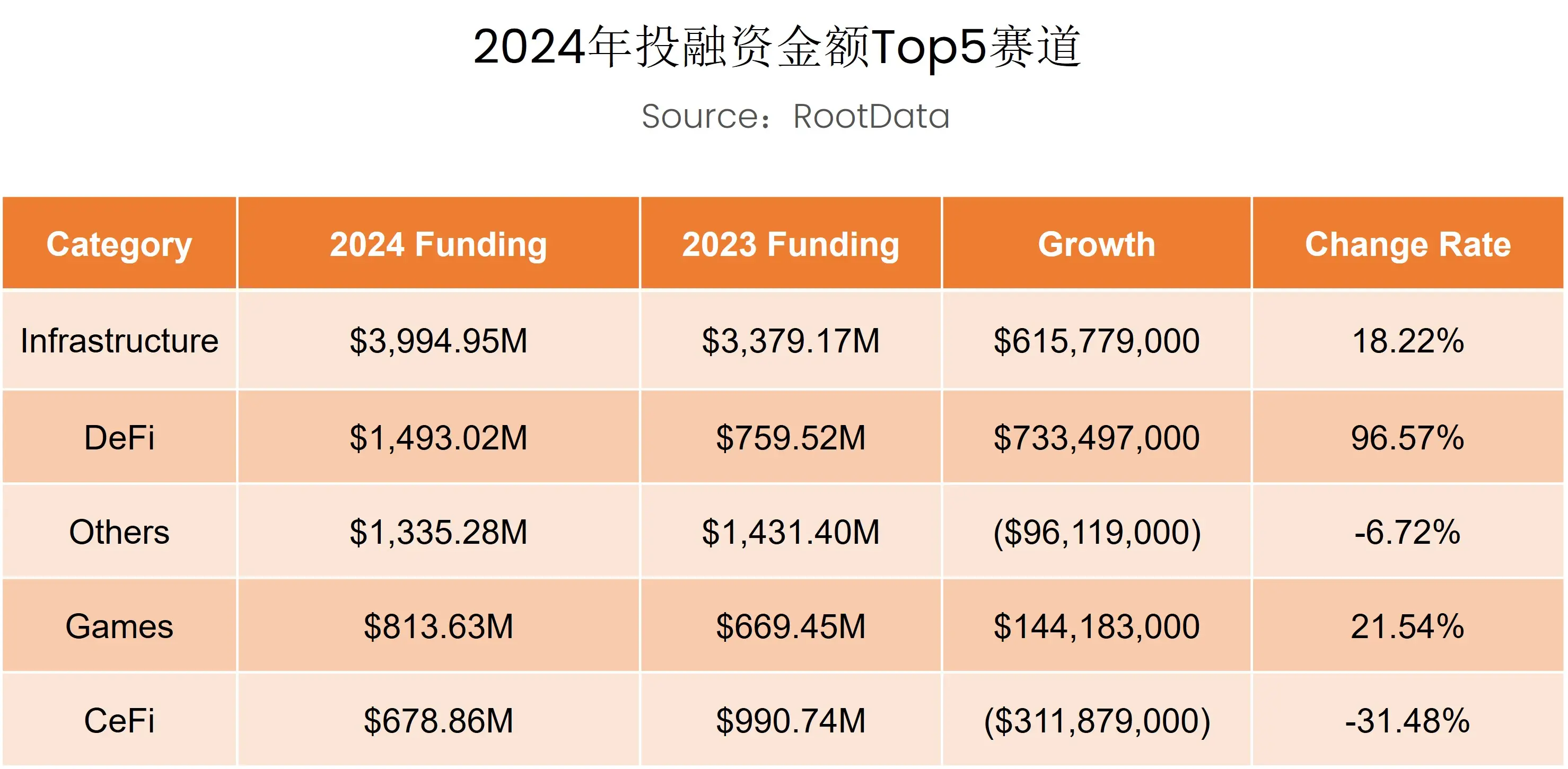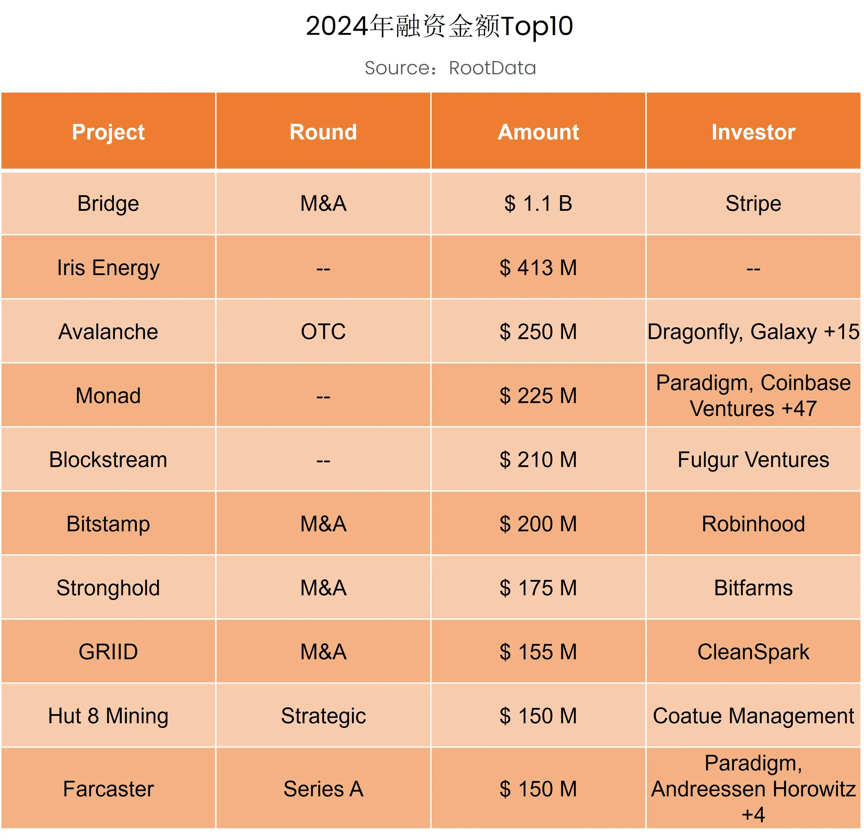 2024年加密货币融资金额来看,投资者和机构资金动向主要发生在: