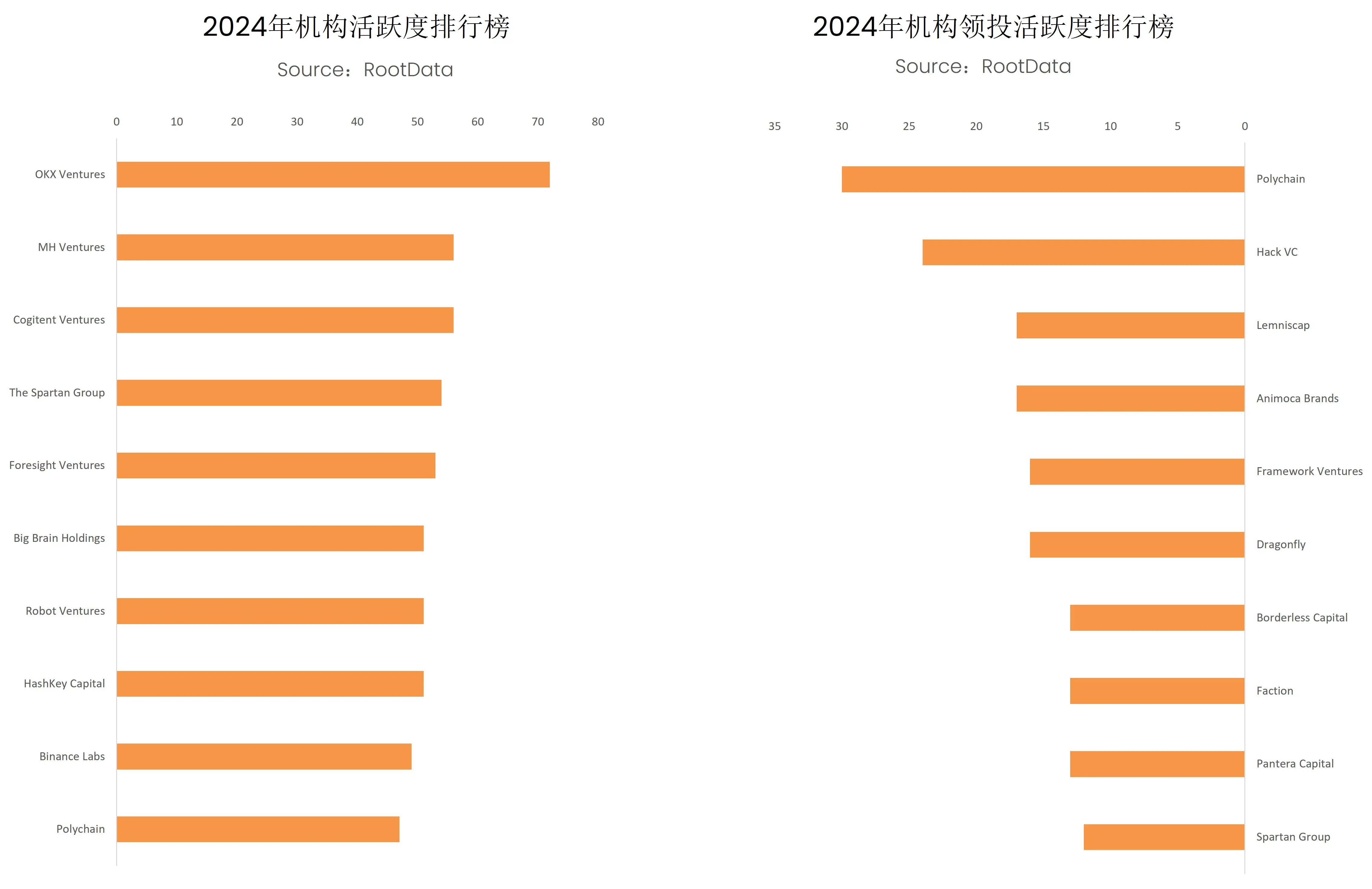 从领投活跃度排行榜来看,Polychain以30次领投位居第一,其投资重点明显集中在基础设施和DeFi两个赛道。第二名Hack VC的24次领投中,17次投向基础设施领域。Animoca Brands的17次领投中有8次投向游戏项目,显示出其在游戏赛道的专业布局。整体而言,NFT、DAO等赛道在领投层面表现冷淡,多数机构在这些领域的领投次数为0。