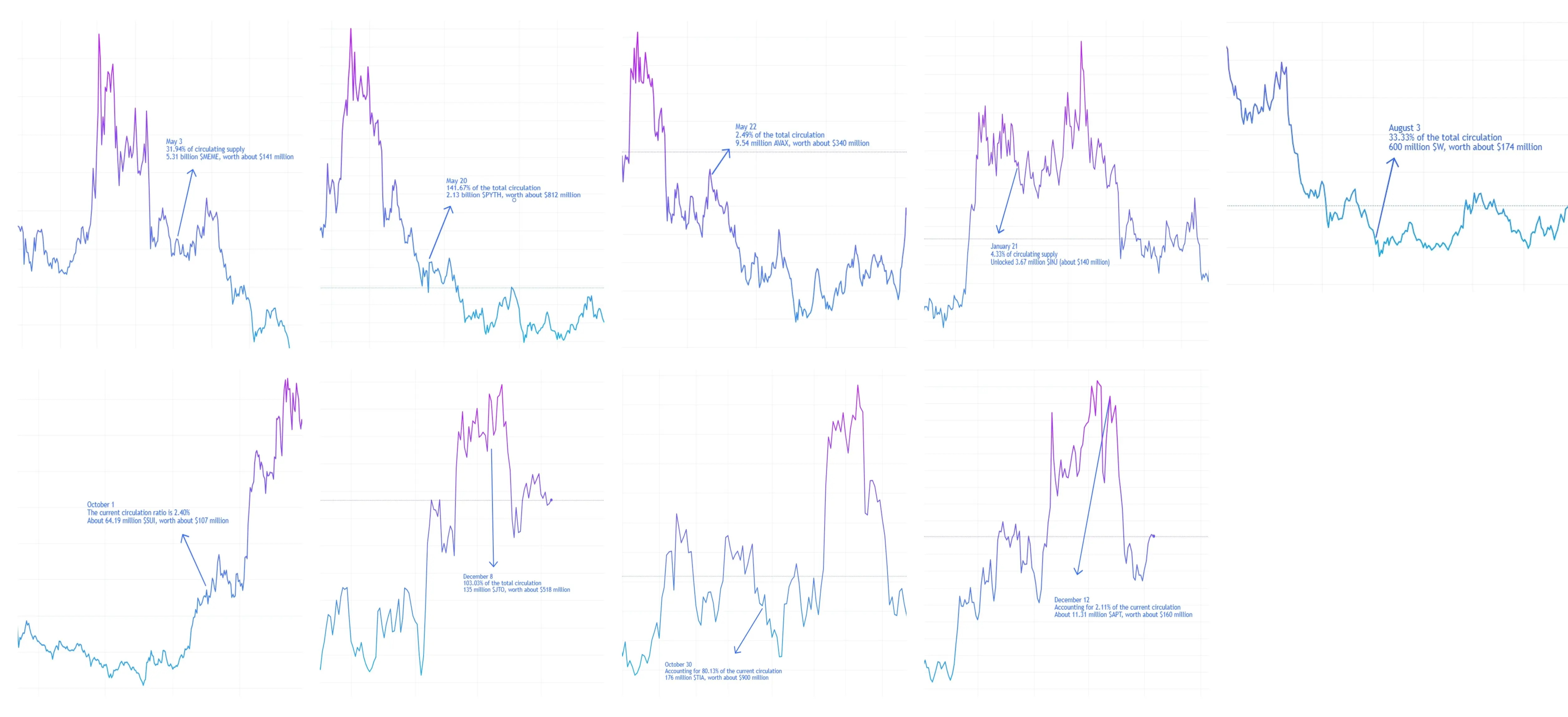 对比Token解锁前后的价格发现,项目方通过提前公布利好信息、市场营销等方式,可以在大额解锁前显著拉升Token价格。此外,场外OTC交易是对Token价格影响最小的换手退出方式,可消除Token大幅下跌的风险。