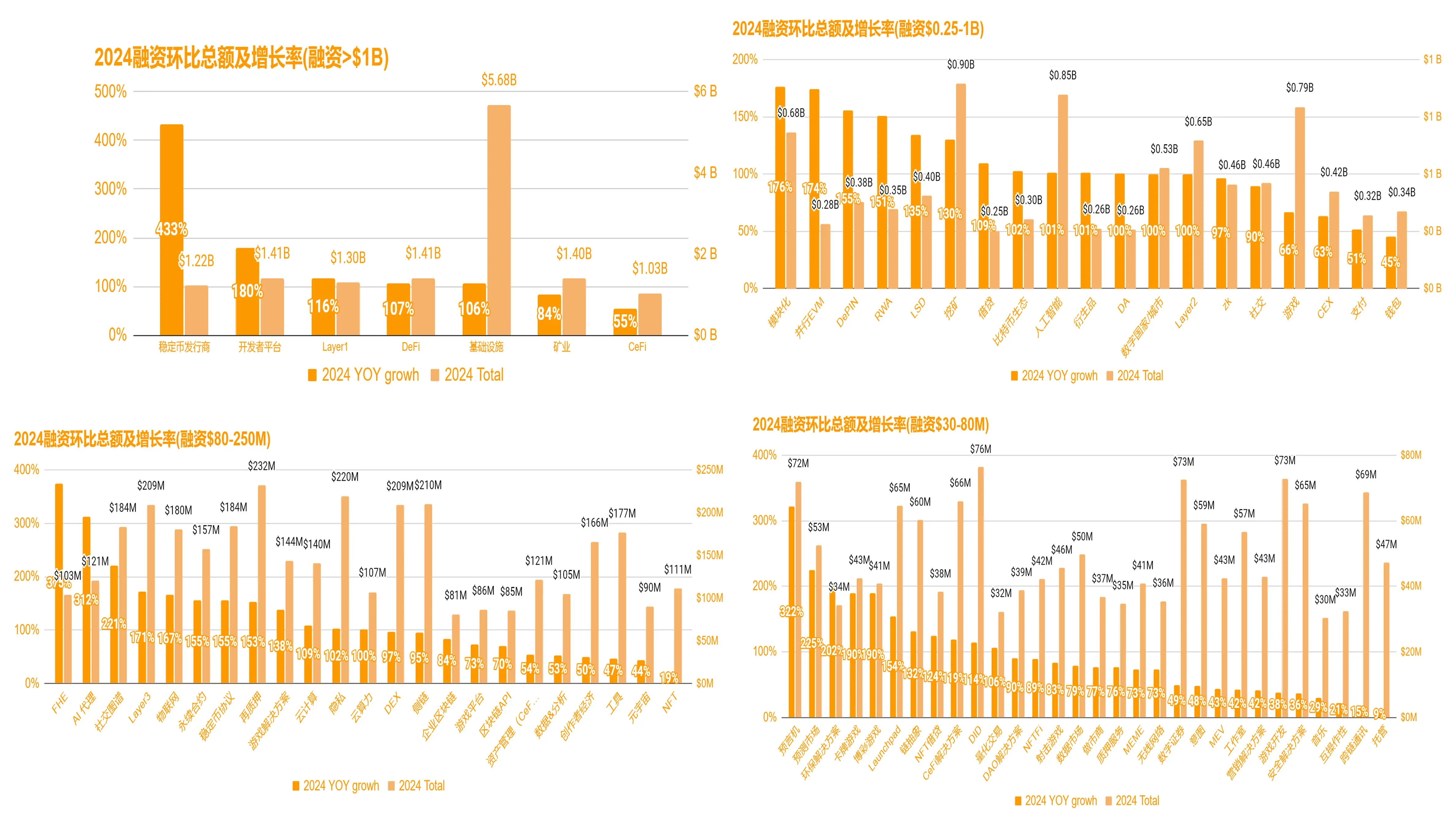<$250M标签:FHE/AI代理/预言机器获得300+%增速, 社交/环保/卡牌/博彩/Layer3/IoT/稳定币协议/永续合约/发射平台获得超过150+%增速