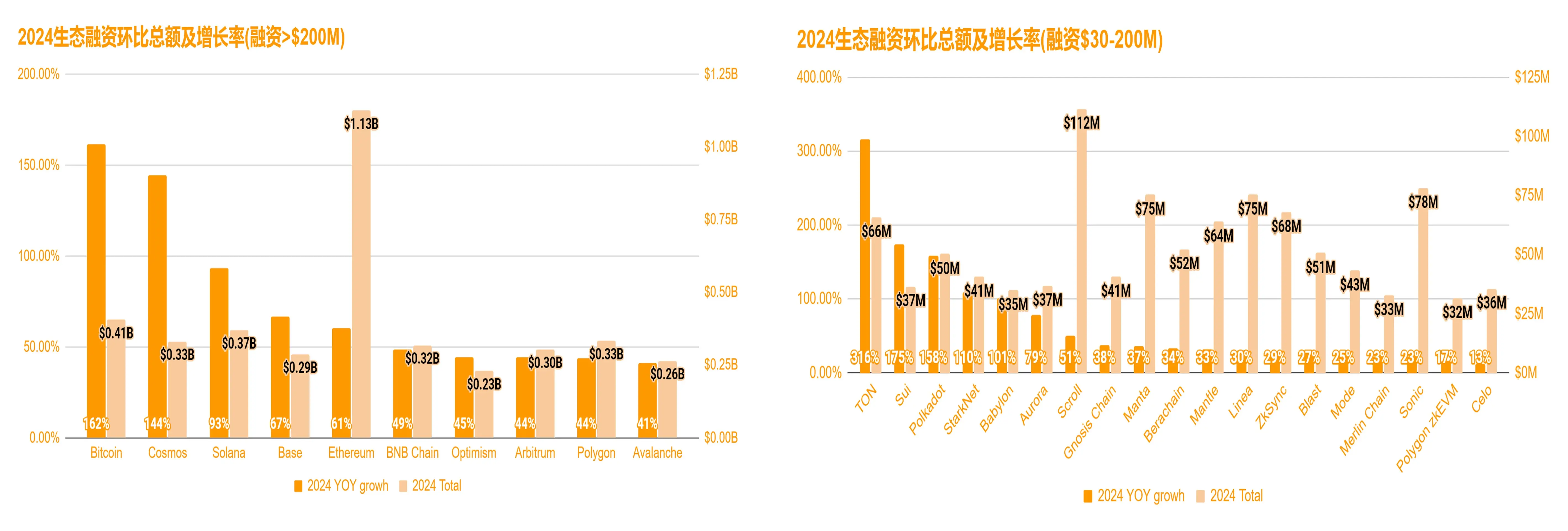 >$200M融资总额:BTC/Cosmos/Solana/Base全年增长明显, Avax/Polygon下滑明显
