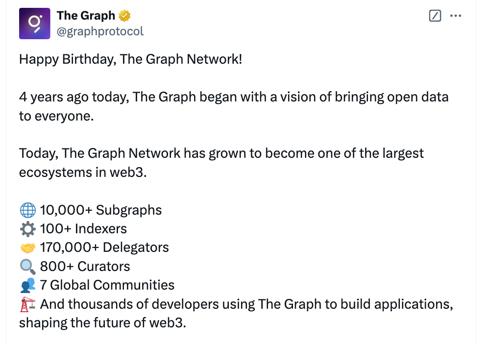 而在这个方向上,老牌项目 The Graph 作为代表,在我们看不见的地方依然势头强劲: