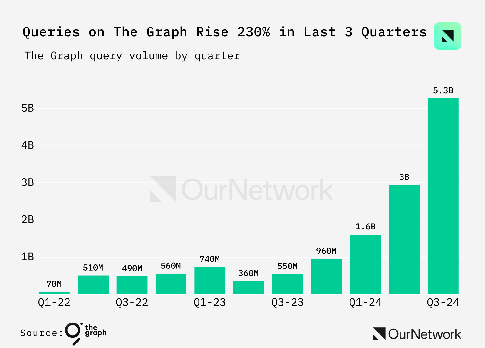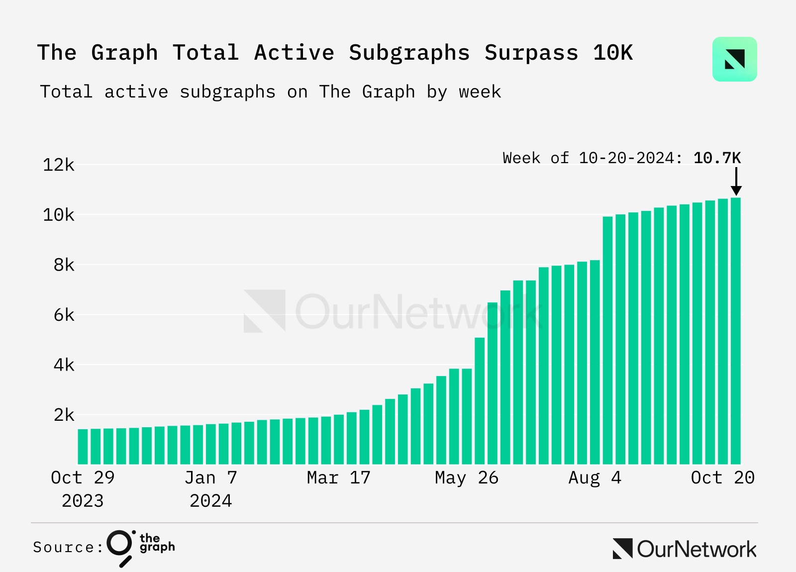 在第三季度,The Graph 的活跃子图数量还在增加,截至今年1月,这一数字已增至超过 10,000 个。这一稳定增长表明 The Graph 在大规模支持去中心化应用中的作用日益重要。