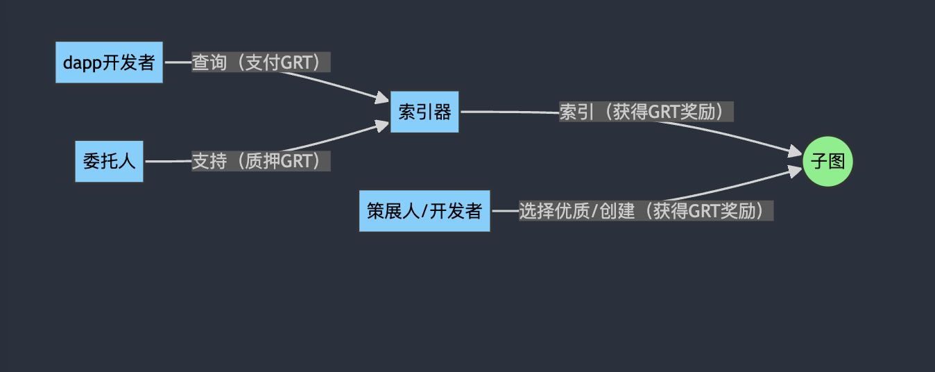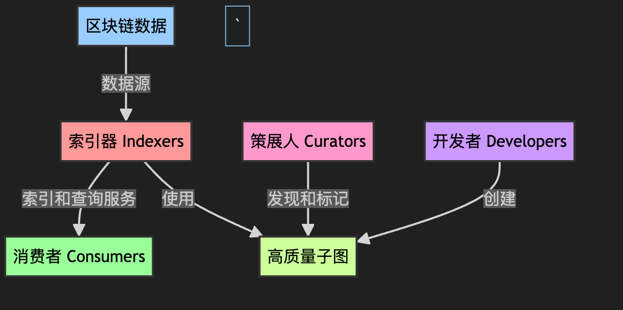 一部分角色提供子图和索引,另一部分角色消费子图和索引,形成一个去中心化的、不由单一实体控制、多方参与的数据市场。