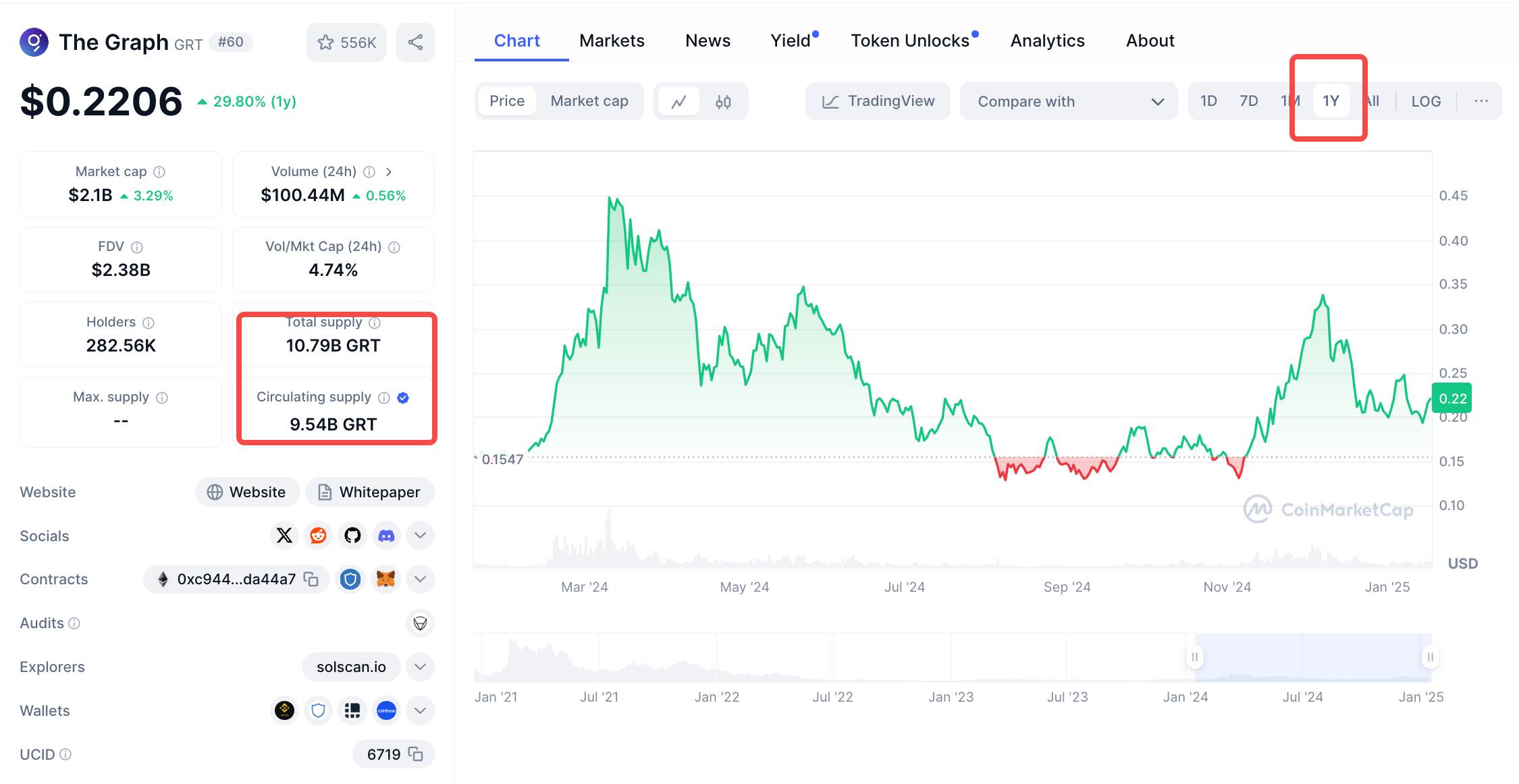 我们并不是专业的二级交易团队,也无法给出准确的财务建议。但作为比较,GRT 作为一个老项目,有一个优势是显而易见的: 全流通,无解锁抛压。