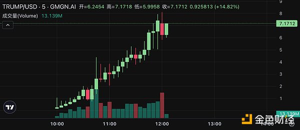TRUMP 自推出以来,有不少声音在争议代币真假。代币价格也波动极大,3 分钟波动超 300%,其市值在上涨触及 20 亿美元后,迅速回落至 7000 万美元附近,后上涨突破 80 亿美元。