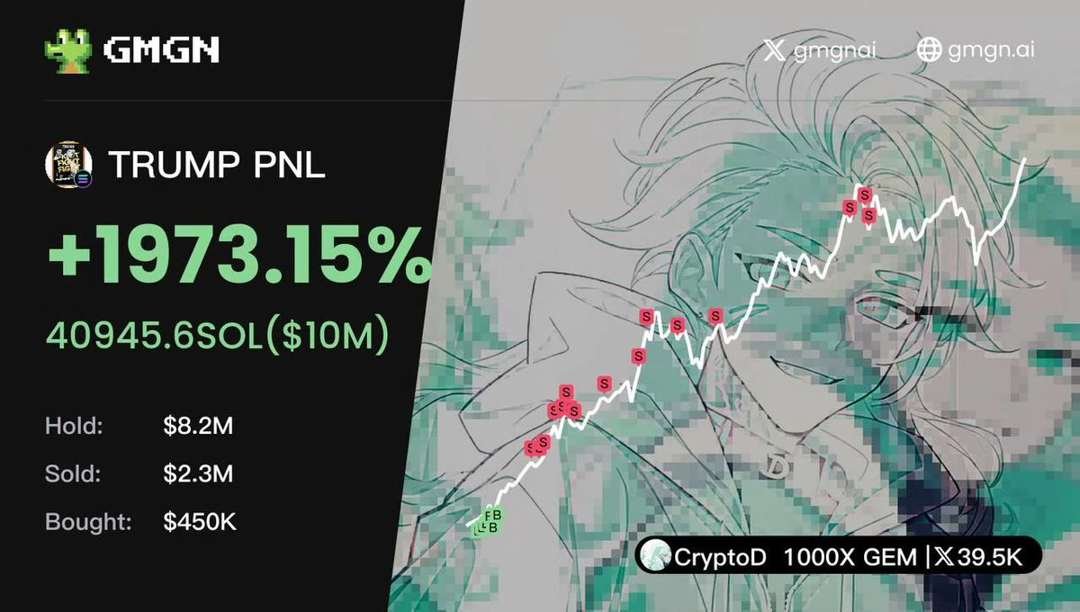 根据 GMGN 网站信息查询,CryptoD 共买入 45 万美元 TRUMP,累计盈利超 870 万美元。根据其本人最新发布的推文显示,其累计利润高达 1000 万美元。