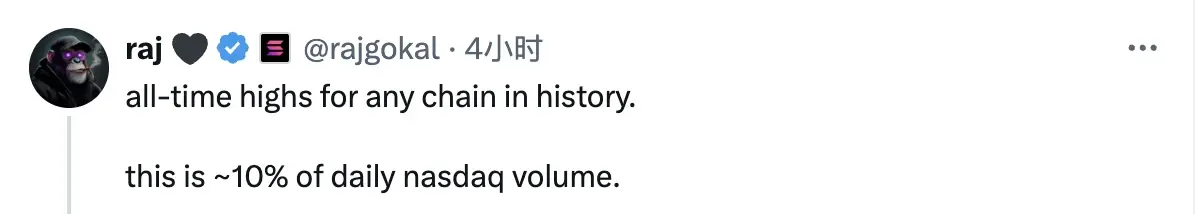 Solana 联合创始人 raj 在评价全网交易量数据时仅用了短短一句话,但已足够说明一切——「这是任意一条区块链从未见过的历史最高水平。」
