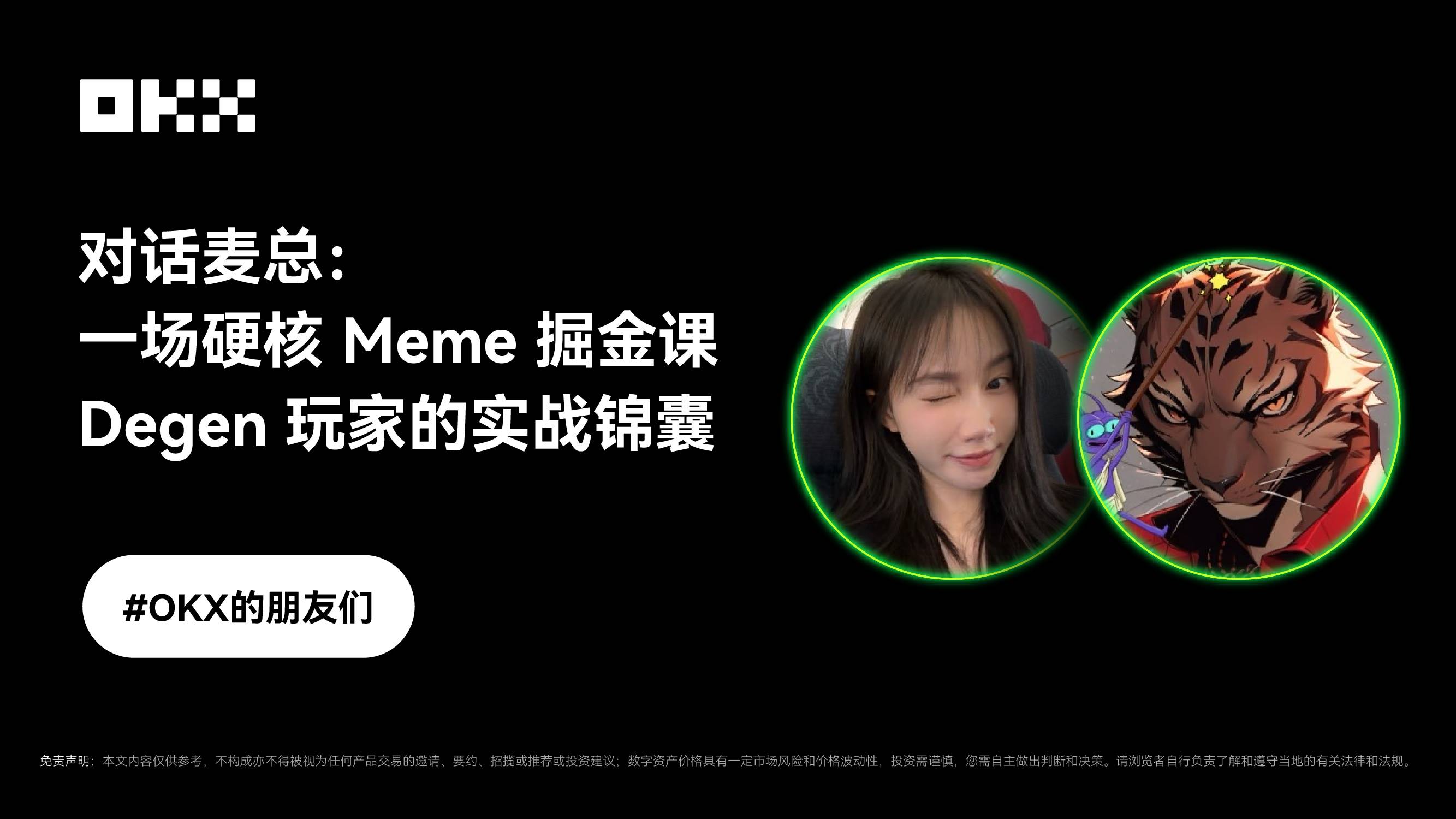 OKX 特别邀请他作为 2025 年《OKX 的朋友们》系列专题首期嘉宾,分享了他对 Meme 赛道的深度思考以及对新手的建议。通过传统金融和加密货币双重视角的分析,为我们展现了一个更立体的市场图景。