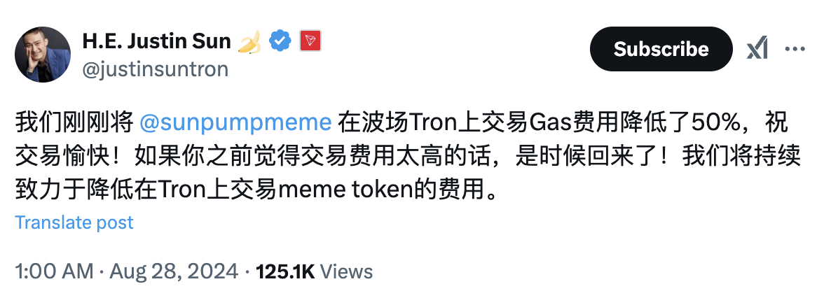不仅如此,火币HTX全球顾问孙宇晨也为SunPump生态的发展倾注了大量心血。他不仅推动降低了波场TRON链上交易Meme的Gas费用,还促成了多项生态合作的重要举措,如通过OKX Wallet交易波场TRON Meme代币手续费直降98%等,大幅提升了用户的交易体验和参与热情,使SunPump生态更加活跃。