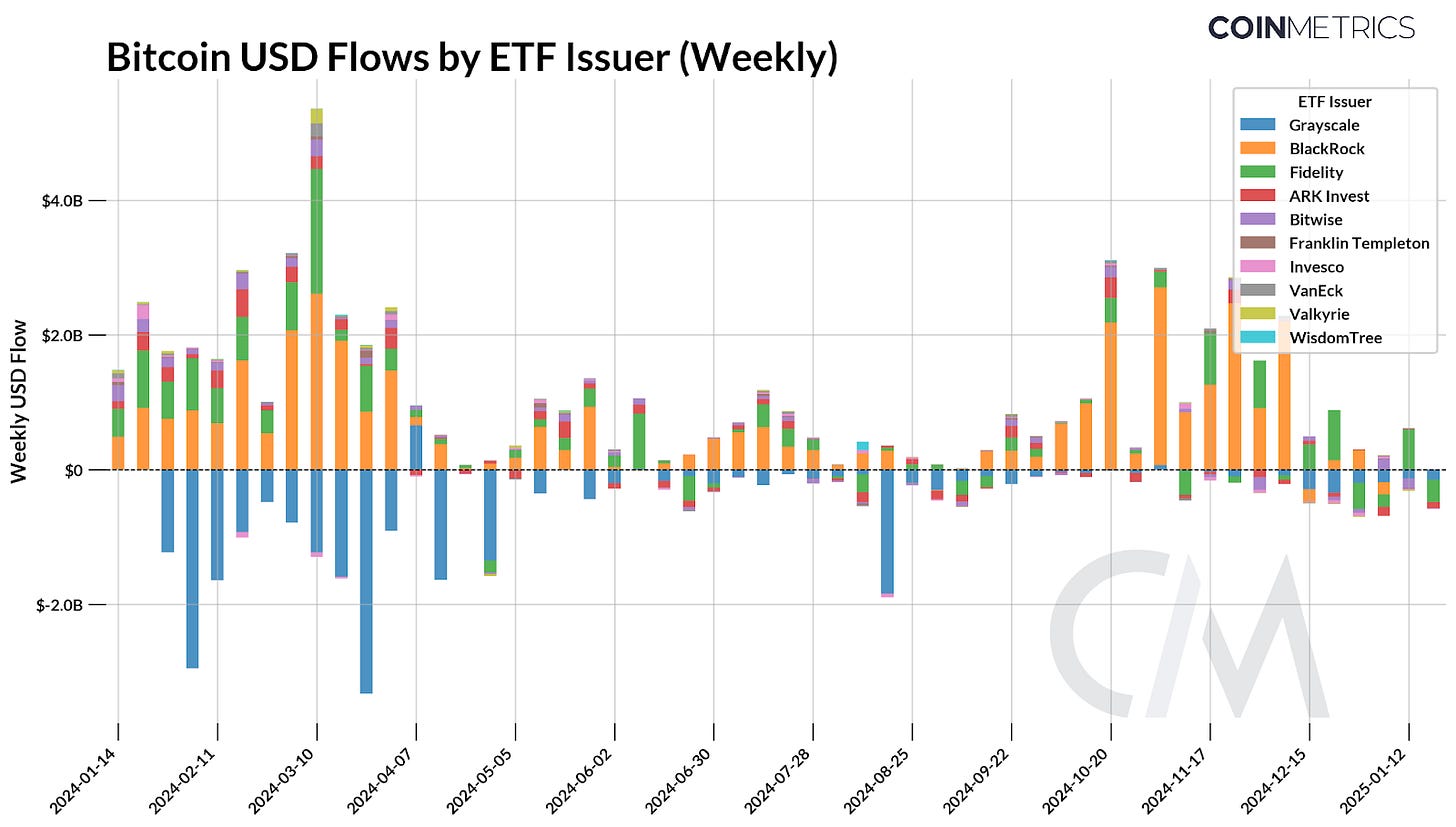 随着时间的推移,流入量开始增加,到 3 月份,ETF 发行人的比特币总持有量已超过约 800,000 BTC。流入量的加速恰逢市场情绪高涨的时期,这转化为加密生态系统各个领域的强势。虽然夏季带来了一段整合期,但唐纳德·特朗普在 11 月美国总统大选中的胜利再次提振了乐观情绪,提振了 ETF 流入量和其他市场。