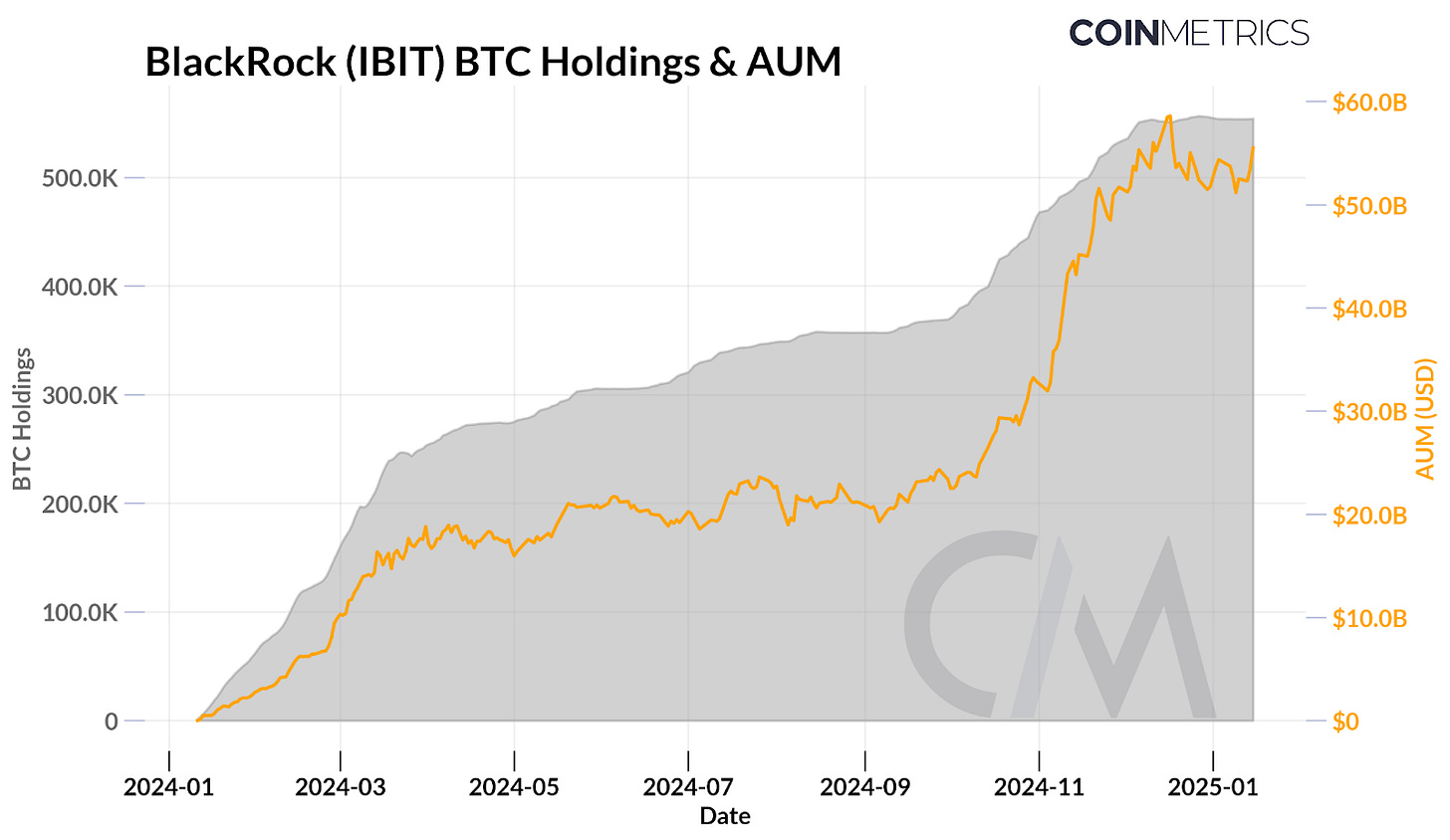 截至 1 月 19 日,贝莱德的 IBIT 资产管理规模达 590 亿美元,资产规模超过贝莱德 iShares 黄金 ETF (IAU),进一步巩固了比特币作为“数字黄金”的地位。彭博 ETF 分析师 Eric Balchunas 表示,IBIT 仅用227 个交易日就达到了 500 亿美元的资产管理规模里程碑,打破了 iShares Core MSCI 新兴市场 ETF 创下的 1,323 天的先前记录。