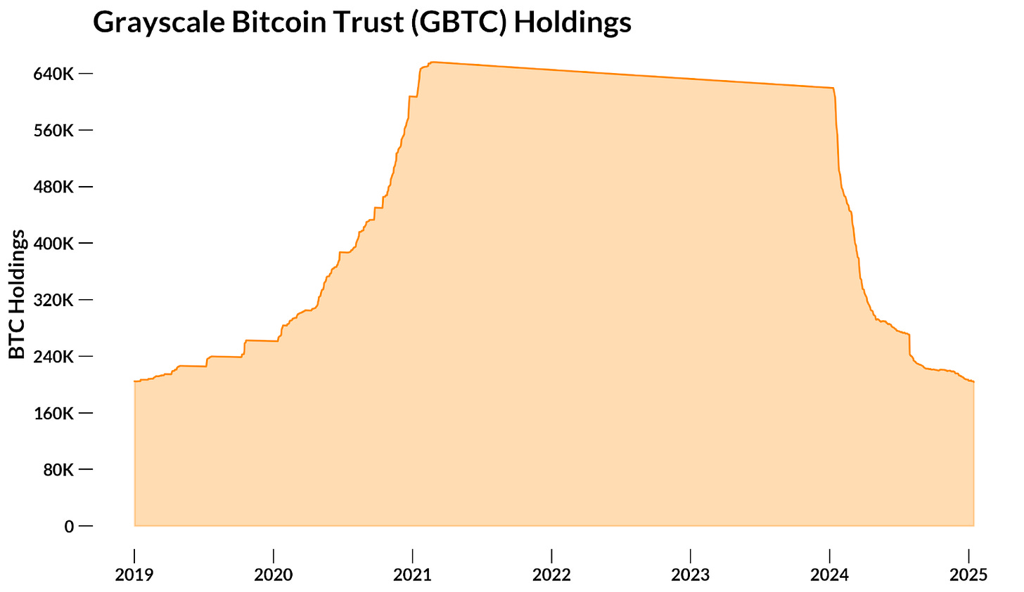 从单个发行者的角度来看,并非所有发行者的表现都一样。虽然贝莱德的 iShares 比特币 ETF (IBIT) 已积累了约 540,000 BTC,占 ETF 积累的所有 BTC 的一半,但 Grayscale 的 GBTC 持有量已从 600,000 多减少到 200,000,拖累净流量下降。
