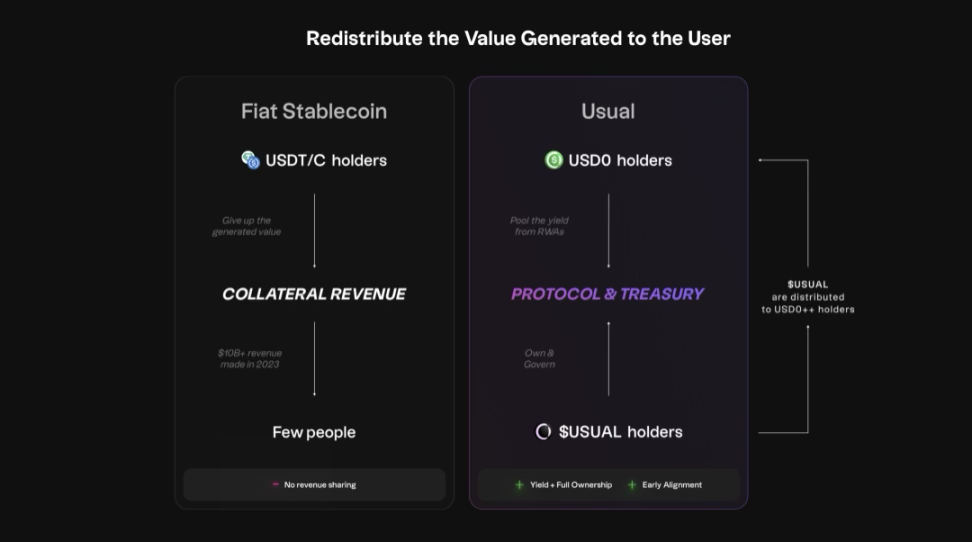 USDT 发行商收益分配和 usual 收益分配对比