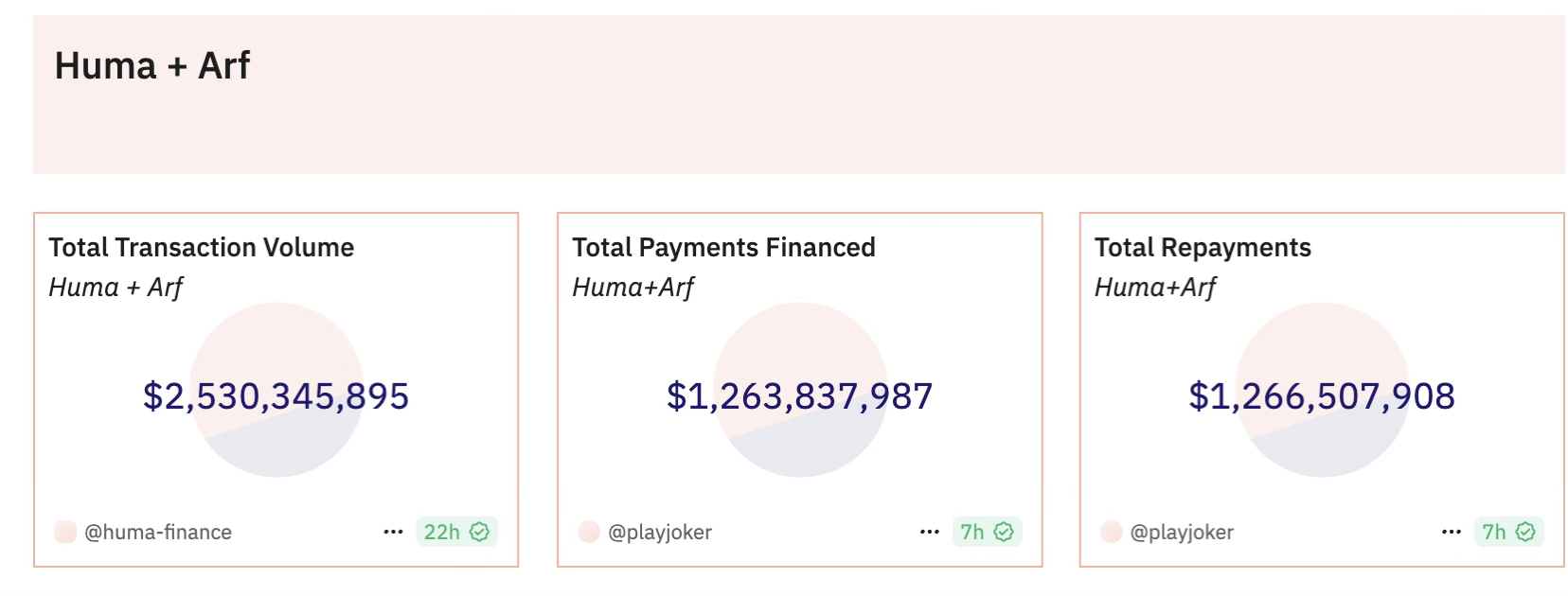 Huma 的主要客户来自英国、美国、法国和新加坡等发达国家,这些地区的坏账率极低,账期通常为 1 到 3 天,按天收费,资金链条透明且高效。当前,Huma 已实现 20 亿美元的资金流水,坏账率保持在 0%。通过与 Arf 的合作,Huma 实现了可观的双位数收益,且与代币无关。