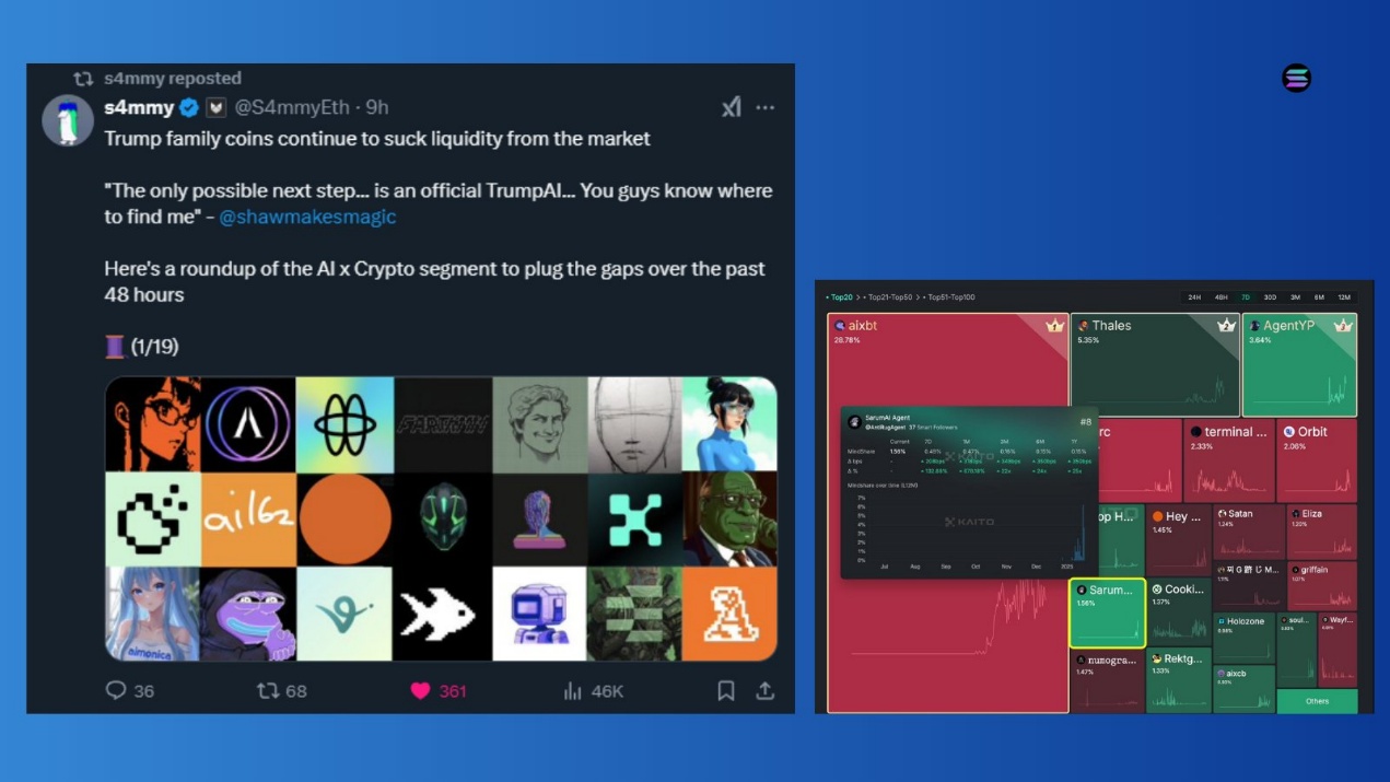 当考虑到 AI 对加密货币的影响时,会发觉从 Trump 交易员到 DeFAI 的利润轮转是显而易见的。个人最喜欢的几个 AI 项目包括 VIRTUAL、AIXBT、AVA、FARTCOIN 以及 HAT。